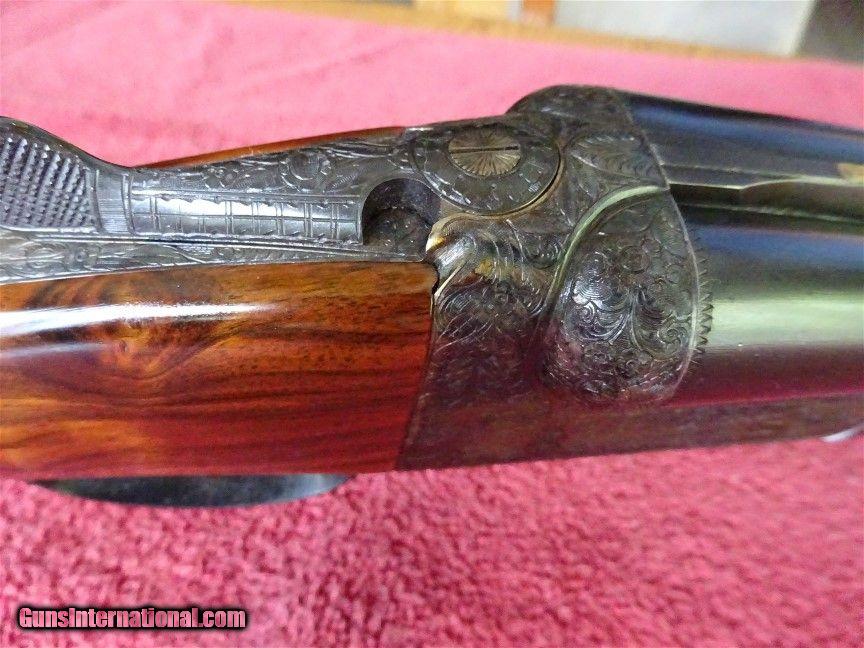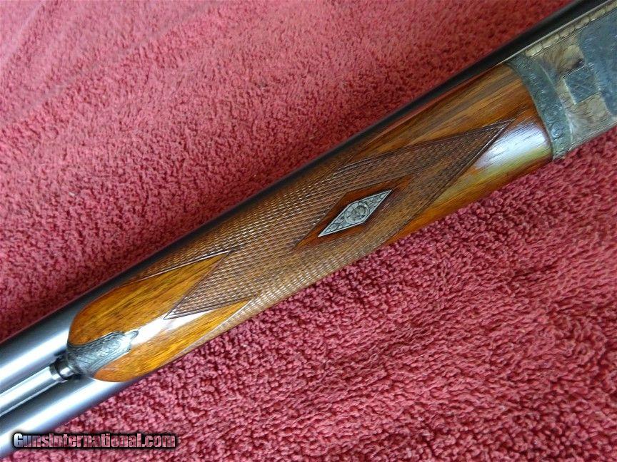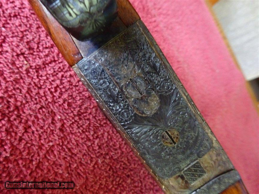 Description: AYA BEST QUALITY BOXLOCK 20 GAUGE. 25" BARRELS, CYLINDER AND IMP.CYLINDER, 99% BRIGHT BLUE, MIRROR PERFECT BORES. CHURCHILL STYLE RIB WITH "AYA" IN GOLD, SAFETY ALSO GOLD INLAYED, AUTOMATIC EJECTORS. PROFUSELLY ENGRAVED, GORGEOUS SCROLLWORK AND FLOWERS, 100% COVERAGE ON FRAME, TOP LEVER, FOREARM IRON, GRIGGERGUARD AND HAS SERIAL NUMBER IN BOLD RELIEF ENGRAVING. 100% VIVID CASE COLOR. STRAIGHT GRIP STOCK, SPLINTER FOREARM, ATTRACTIVE EUROPEAN WALNUT, FINE CHECKERING, NEAR PERFECT WOOD FINISH, 1 1/2" X 2 1/4" X 14 3/8", 5 POUNDS 4 OUNCES. THE GUN IS IN LIKE NEW ORIGINAL CONDITION. GREAT LITTLE GUN TO CARRY ALL DAY, SUPERB QUALITY. $3750.00 + $50.00 Insured shipping to an FFL address. See all Pats listings We also have hundreds of pieces of ORIGINAL gun company advertising & memorabilia available for sale. We have no reprints or reproductions. Email for more information. SOLD |