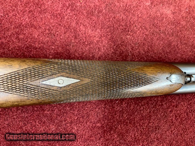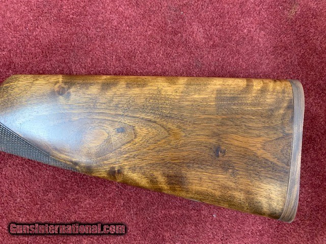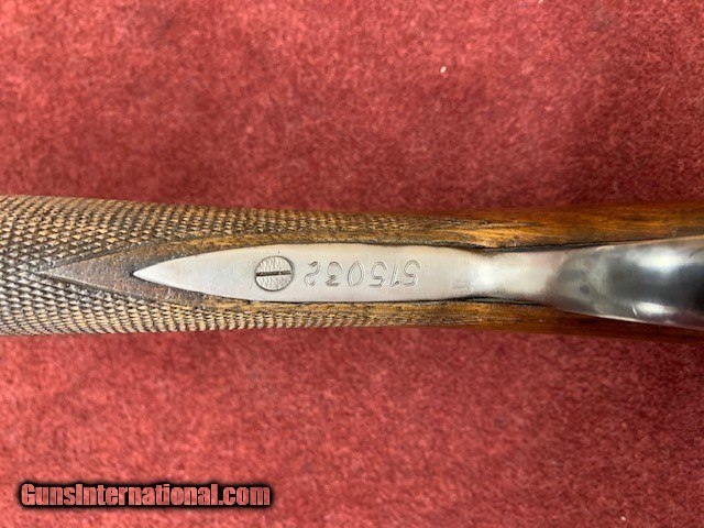 Description: AyA BLE 28g 25" Good to very good condition SN- 515032 28g 25" IC/Lt.M 2 3/4" chambers Ejectors Autamitc safety 5 1/4 lbs Comb 1 1/2" Heel 2 1/4" LOP 14 1/8" to 3/8" Wooden Buttplate Cast 1/4" off Double triggers Sweet little 28g bird gun! Thoroughly stripped and cleaned by Orvis Gunsmith. New Wood buttplate installed in-house. Nice colors and very tight. Super clean bores. Some wear on the bbls and bluing is worn off bottom tang from carrying.. NO rust. A must buy at a great price! Call or email for additional information. SOLD Shotgun Gauge: 28 Gauge |