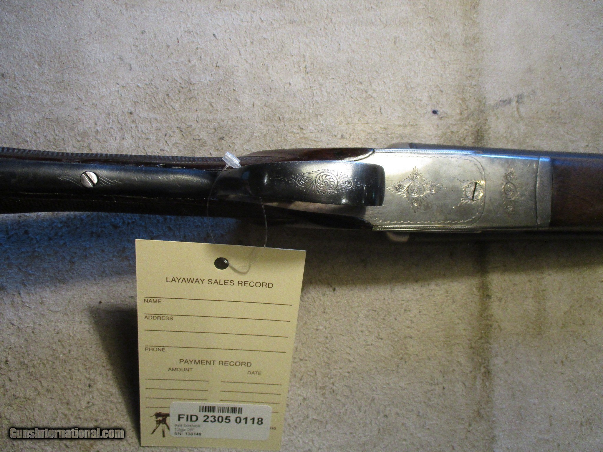 Description: AyA boxlock, 12ga, 28" barrels, fixed chokes MOD and FULL, SN is 1301xx. Double triggers, extractors. Perfect bores, nice classic old gun! LOP is 15" as pictured. We will trade for silver and gold. We accept personal check, any certified funds, Venmo or Zelle. We can also take your credit card, +3%. Email me if you would like these pictures sent to you, they will come through bigger and better than on the listing page here. We do offer Layaway. Our standard terms are 25% down, 90 days. Initial deposit is not refundable. Email me with any questions. Please check your local laws to confirm it is legal to own in your state! Buyer pays $60 shipping and insurance in a brand new PLANO hard case to your FFL in the lower 48. AK, HI or PR is extra. I will ship to California, as long as it is legal, NO PROBLEM! All my guns come with a non-firing, 3 day unconditional return privilege, from the day UPS delivers to your dealer. Buyer pays shipping both ways if the gun comes back. Please make sure to make it to your FFL to inspect within the 3 days. I am a licensed FFL, and will include a copy of my FFL with the gun for your dealer’s records. I will ship to a C&R if the gun is eligible. I will ship to California, but you need to confirm the gun is legal where you are, California or other. WE BUY AND CONSIGN GUNS AND GUN COLLECTIONS! We will travel to pick up collections! I am always looking for good clean, old original Winchesters to buy, consign, or trade, especially Pre '64's model 70's and model 54's. WE ALSO TRADE FOR CLASSIC CARS AND TRUCKS! We also trade for gold and silver. SOLD Shotgun Gauge: 12 Gauge Manufacturer: AyA Model: Boxlock Barrel Length: 28 Condition: Factory Demo |