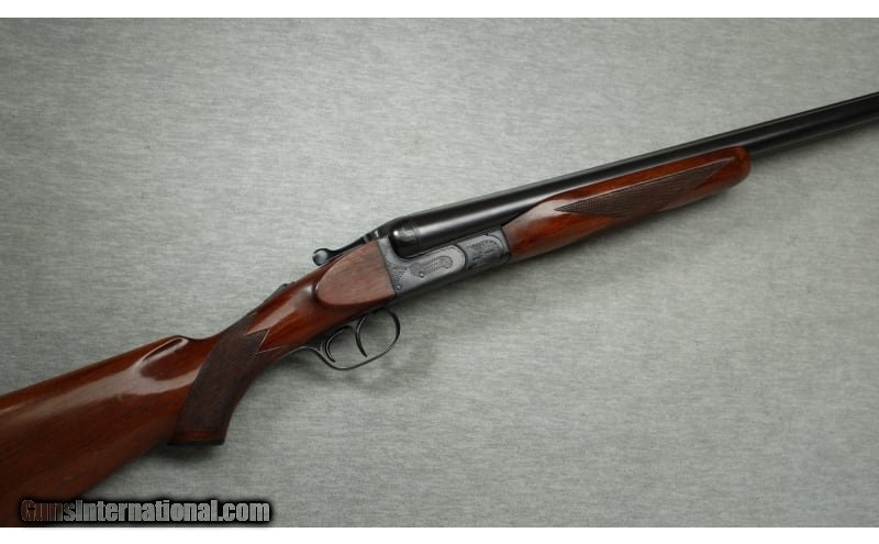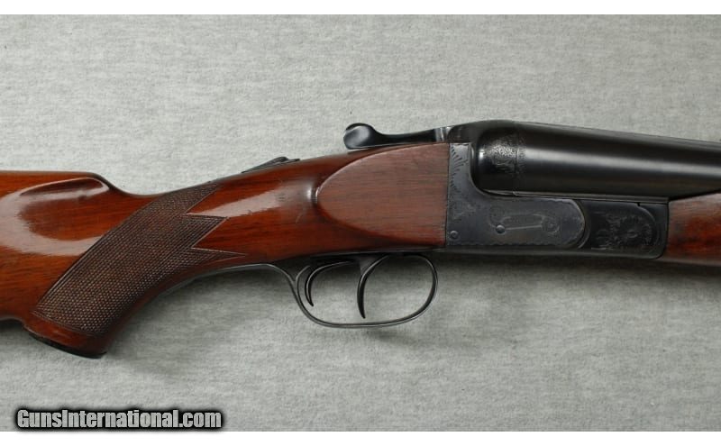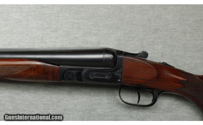 Description: AYA Matador in 10 gauge. Introduced in 1955. Single bead sight on a matte rib. Barrels feature 3 1/2 inch magnum chambers, choked full/full with ejector. Standard frame engraving and markings, double triggers and tang safety. Mounted on a checkered pistol grip stock and beavertail forearm. Has a solid Kick Eez recoil pad. Length of pull approximately 15 1/4". 10 Gauge SOLD Chambers: 3 1/2 Inches Metal Condition: Excellent Wood Condition: Very good with minor handling marks Bore Condition: Bright Barrels: 32 Inches Triggers: Double triggers Stock Dimensions: LOP 15 1/4 Inches Fore End: Checkered walnut Butt Pad: Rubber Pad Weight: 8 lbs 8 oz Sights: Silver bead on solid rib Chokes: Full/Full Item Location: La Vista, NE |