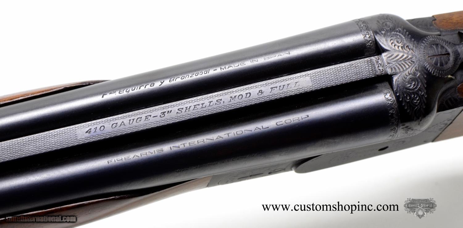 Description: AYA Matador 410. Like New In Box Awesome Double Barrel, Side By Side .410 Shotgun Made By Aguirre Y Aranzabal From The Famous Eibar Region, Spain. Renown Hand Crafted Shotgun Makers. Very Unique In Display Box, Cover Box And Shipping Box. Comes With Spanish Stamp, Hang Tag And Certificate. SPECIFICATIONS