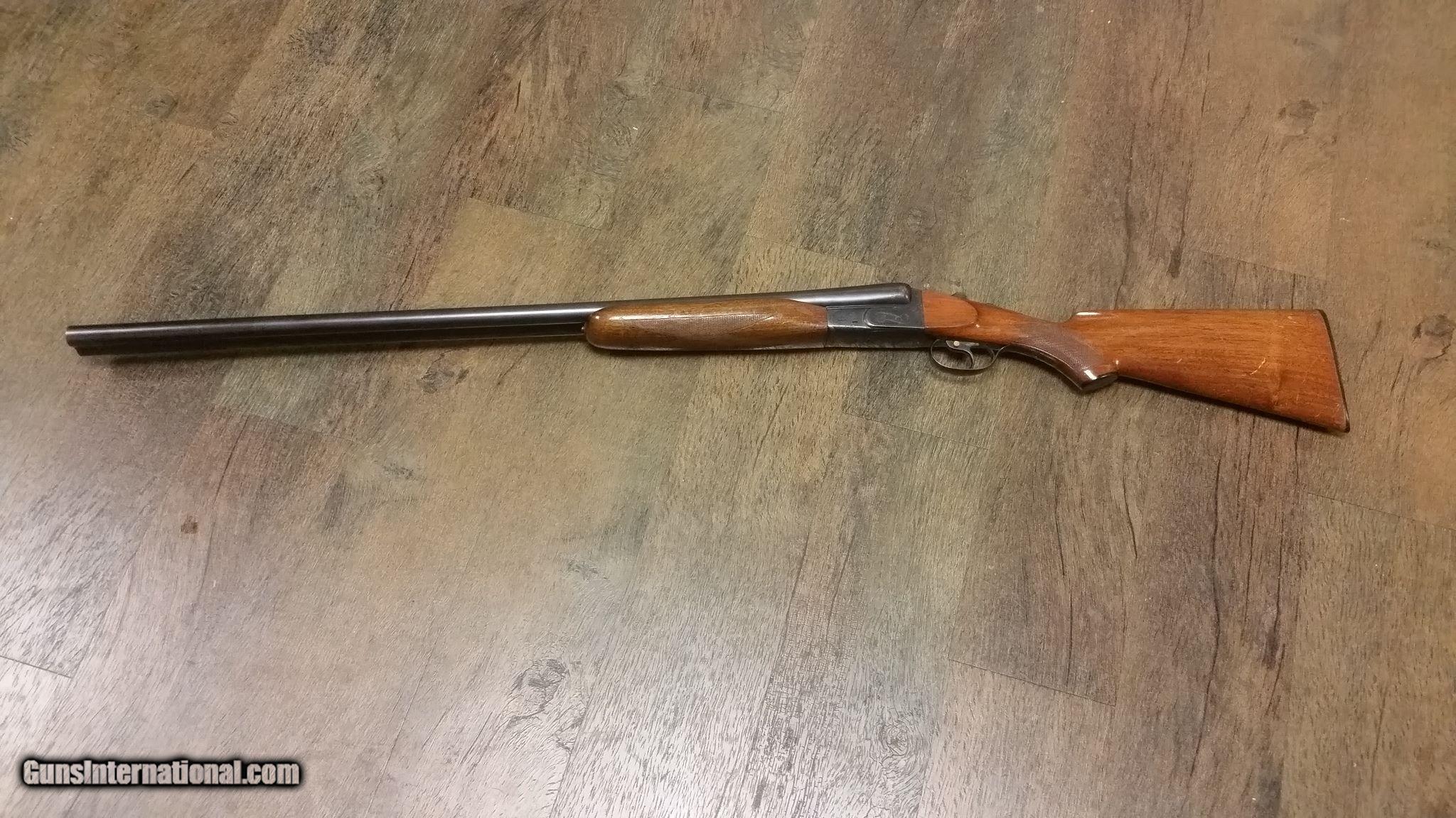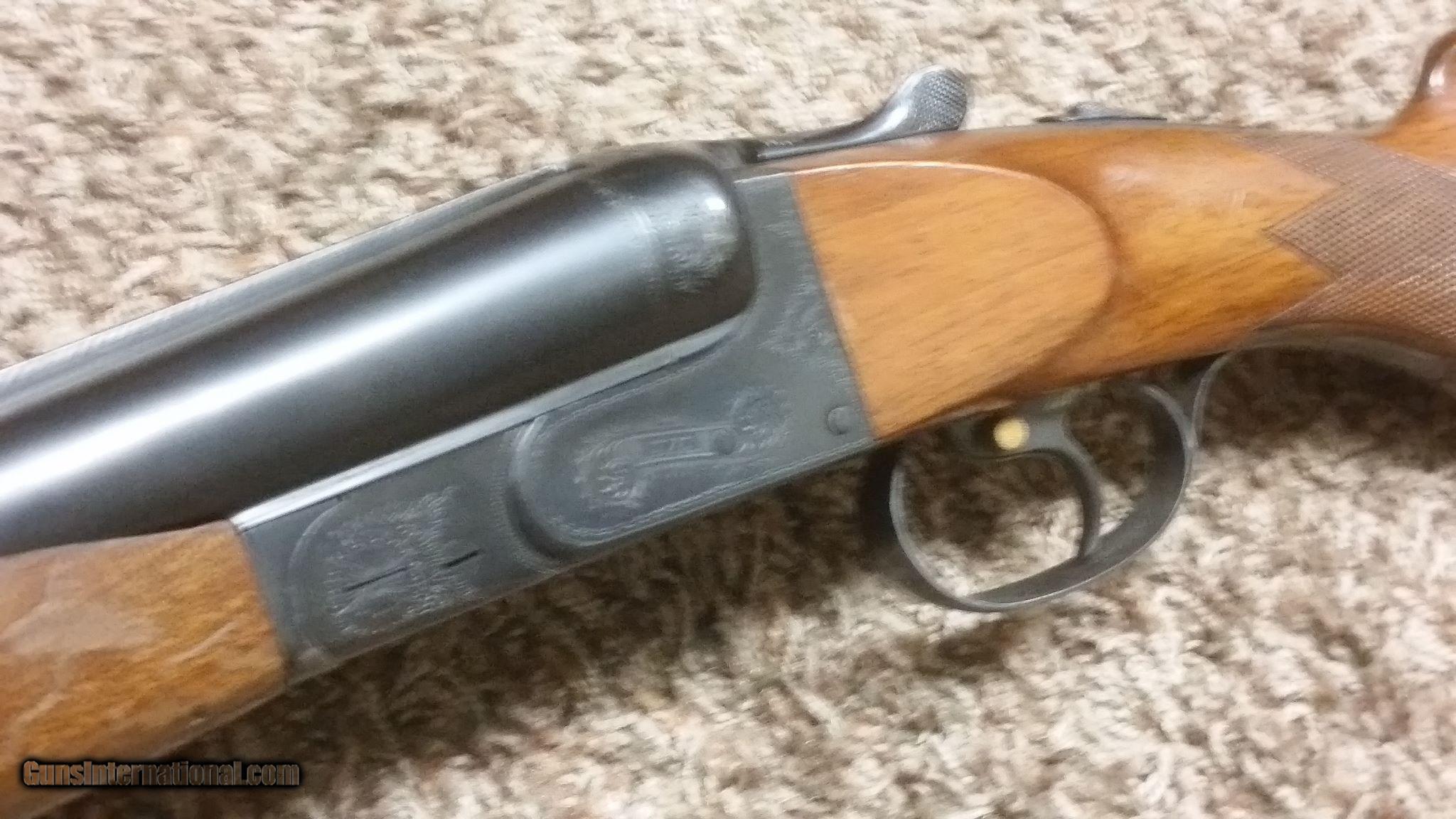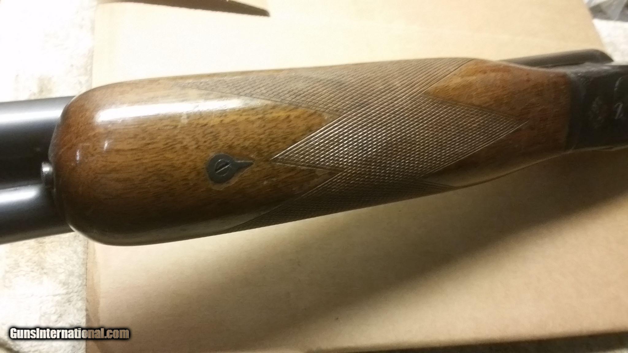 Description: AYA Matador MAGNUM 12 gauge with 32 inch barrels and 3 inch chambers. Serial number 131405 on all numbered parts. Single selective trigger with automatic ejectors. FIXED FULL / FULL chokes. This is a beast of a SXS. Weighs 9 lbs 3 ounces. 14 1/8" L.O.P. Factory stock dimensions. Nothing changed or altered. 95% plus finish on the metal. Bright cleany shiny pit free bores. No dents or dings in the barrels. The wood is very good with no splits or cracks. About 90% varnish remaining. No gouges, deep dents or dings. Add $30.00 S/H/INS. SOLD |