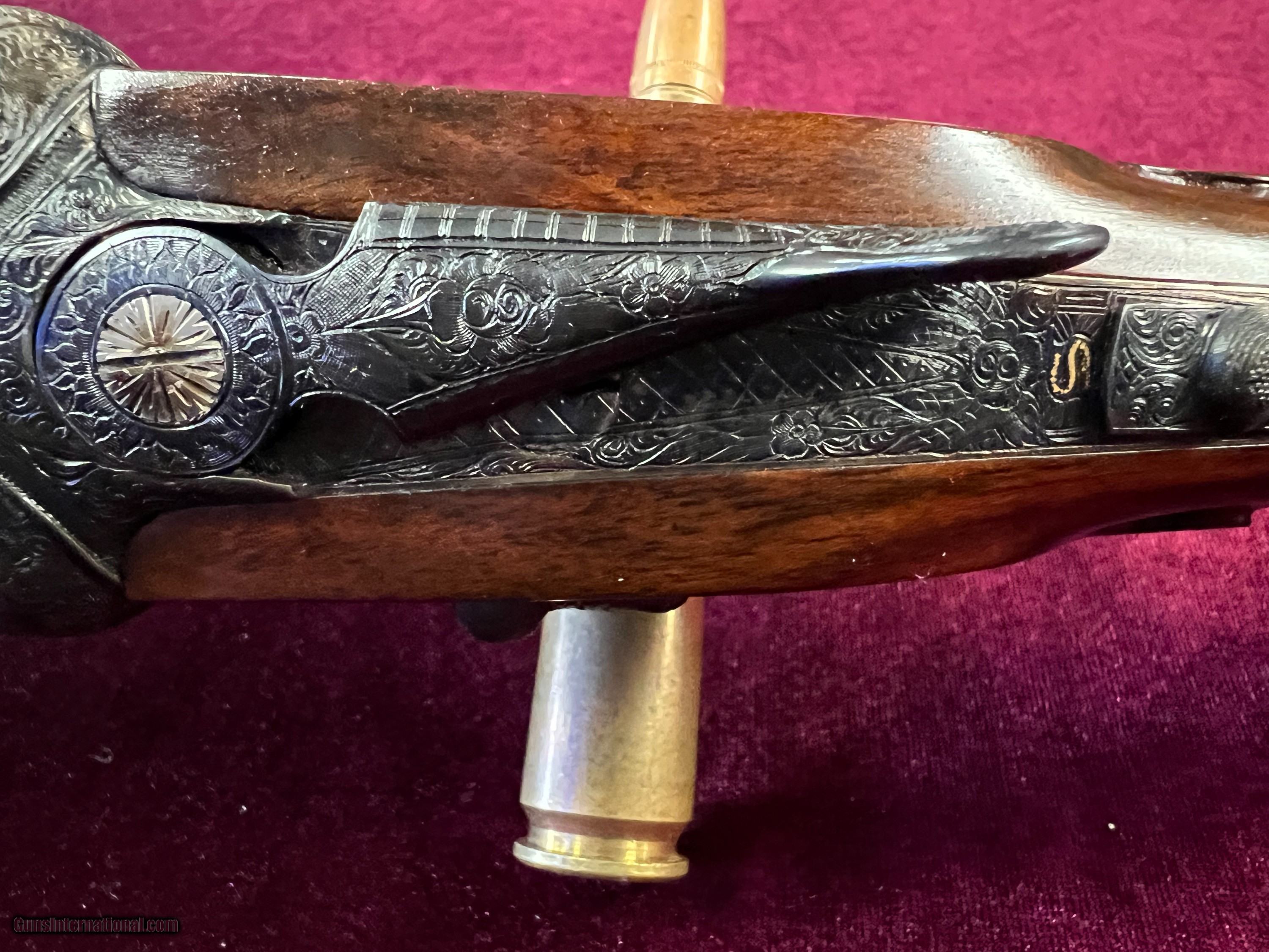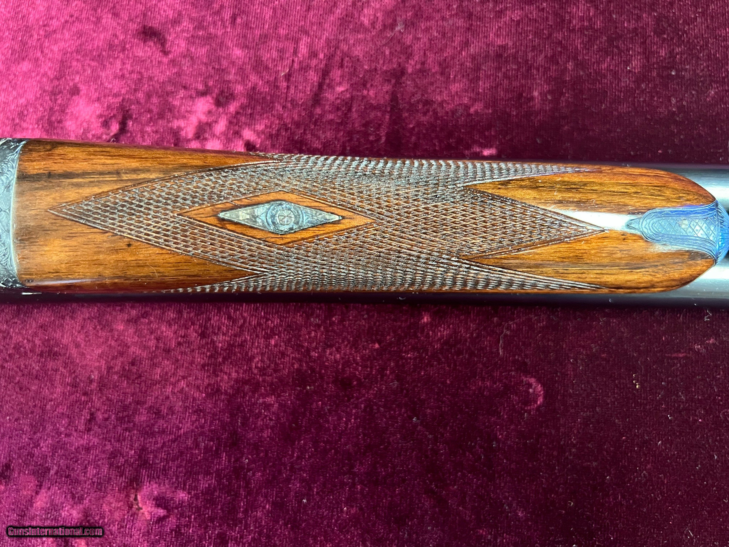 Description: Hello all. In this listing, we are selling a beautiful AYA Model 25. This Spanish Shotgun is chambered in 20GA with 25" barrels, choked for Improved Cylinder and Modified. The Length of Pull is 14 5/8", and the weight is 6.2 oz. The gun is 99% mint, as new. The blueing is 99%, the case colors are 99%, the wood is 99%, and the gun has been fired very little. We are pricing this gun at a wholesale price of $4650. If you have any questions, or require any additional photos, please feel free to contact us. Buyer pays shipping. We charge 3% on all card transactions. SOLD Shotgun Gauge: 20 Gauge Manufacturer: Aguirre y Aranzabal Model: 25 Serial Number: 510707 Barrel Length: 25 inches Condition: Mint Metal Condition: 99% Wood Condition: 99% Bore Condition: Mint Chokes: IC/MOD |