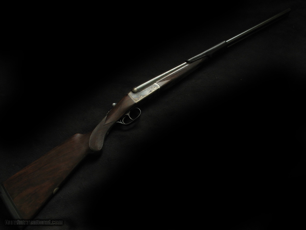 Description: Unusually nice wood with crisp 26 lpi checkering and vacant silver oval on this well made ejector gun with 27" x 2 3/4" chopper lump barrels threaded for Briley tubes cyl, sk, ic, mod, im. LOP 15, drops 1.5" and 2.5", 3/16" cast off. Excellent condition overall, no significant cosmetic flaws other than vry slight wear to finishes. Decelerator pad, comes with leather covered forearm sleeve, 5 choke tubes, and a choke wrench. 5.5 lb. SOLD |