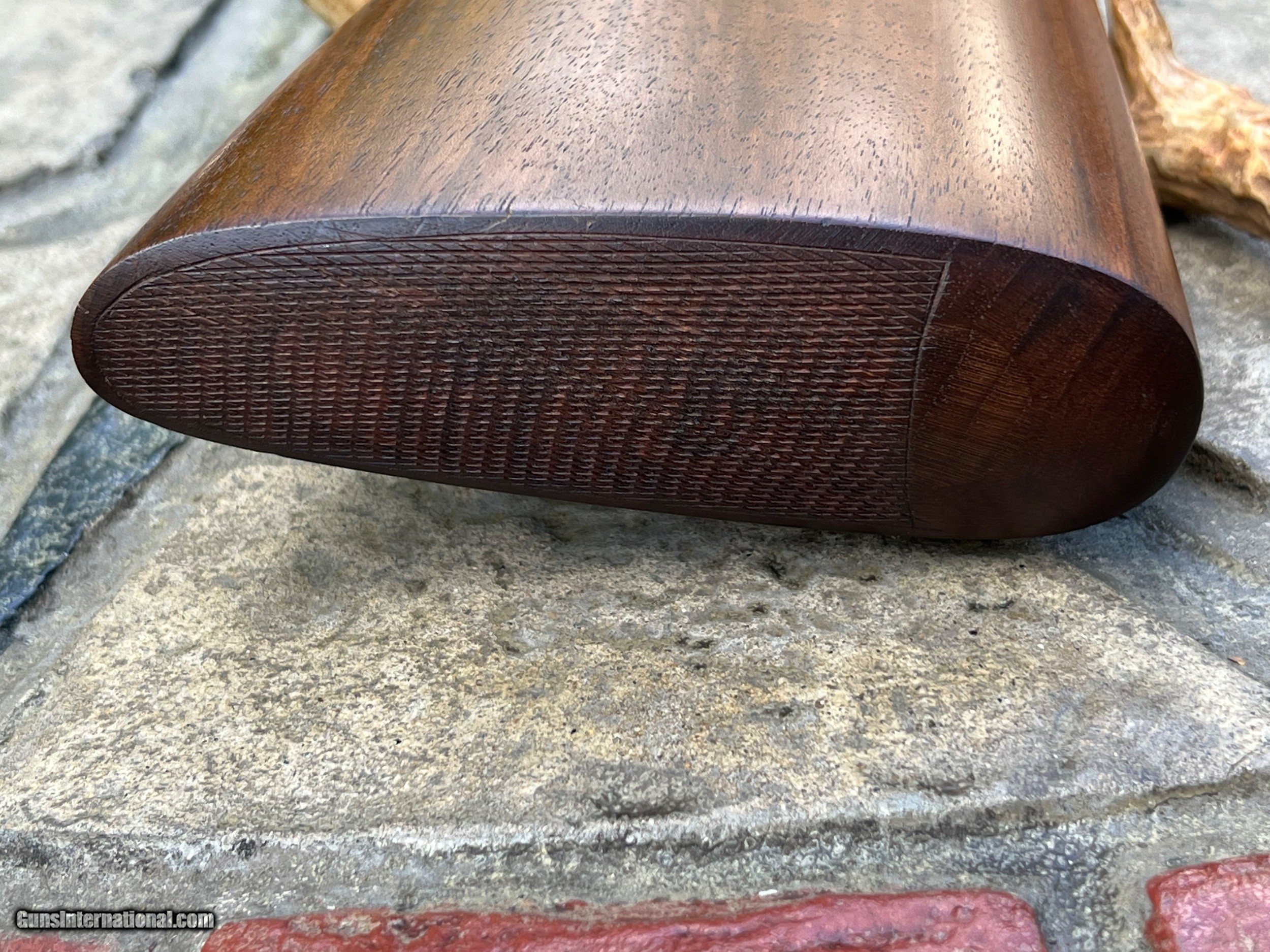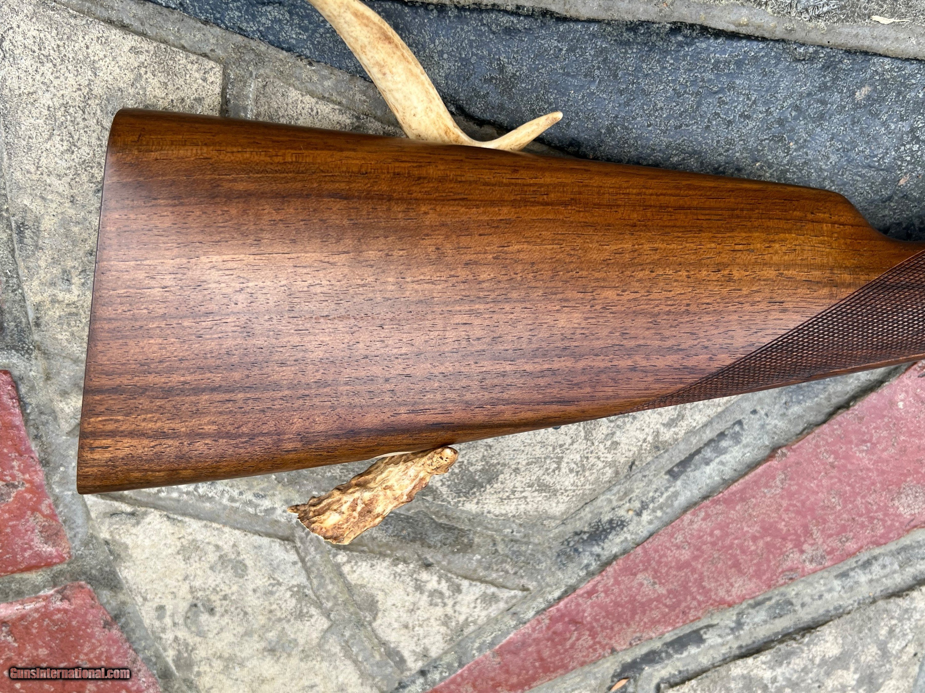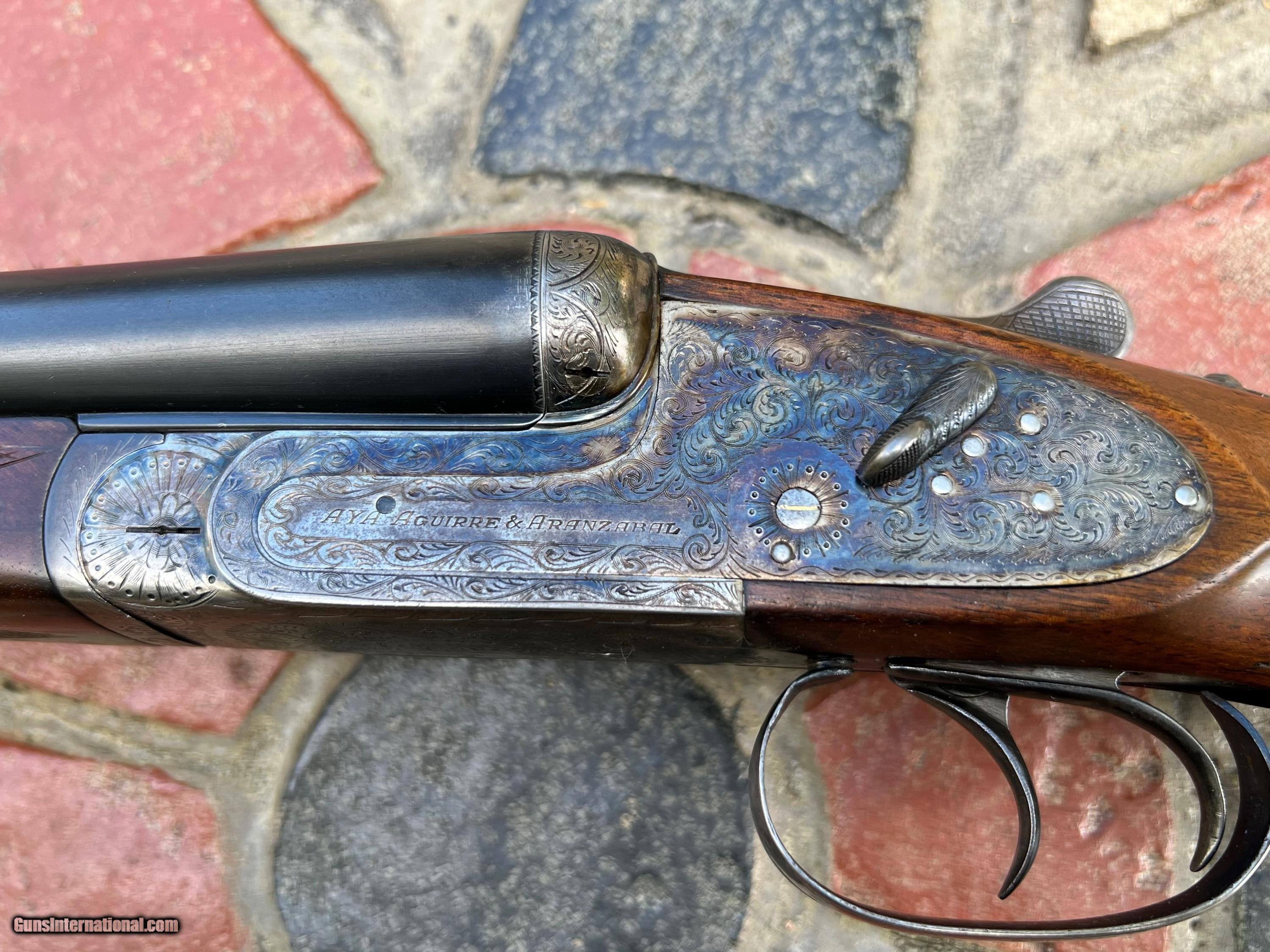 Description: Very Nice AYA Model No. 2 12 gauge with 26 inch barrels, 2 3/4 inch chambers choked Improved Cylinder and Cylinder. Barrels have possibly been shortened to open the chokes but look uncut. Length of pull is 14 5/8, Drop at Comb is 1 1/2 and Drop at Heel is 2 7/16. Locks up tight on face, pristine condition with almost no handling marks. Weight is 6 lb. 9 0z. Cast off for right handed shooter. Hand detachable side lock, strong well timed ejectors, very nice engraving, checkered butt and straight grain walnut stock, no case. Manufactured in 1972 during the golden age of Spanish guns. This is a fast handling, great bird gun that's ready to hunt. Thank you for looking. Insured shipping is $65 to FFL Dealer. Payment by check, certified check or money order. Three day inspection period. SOLD Shotgun Gauge: 12 Gauge Manufacturer: AYA Model: No. 2 Chambers: 2 3/4 Ejectors: yes Condition: Excellent Metal Condition: Excellent Wood Condition: Excellent Bore Condition: Excellent Stock: Straight Stock Comb: 1 1/2 Stock Heel: 2 7/16 Stock Cast: off Fore End: Splinter Butt Pad: Checkered LOP: 14 5/8 Weight: 6 lb 9 oz Sights: front bead Choke Left: Light Mod Choke Right: Cyl Engraving: Yes Case: No |