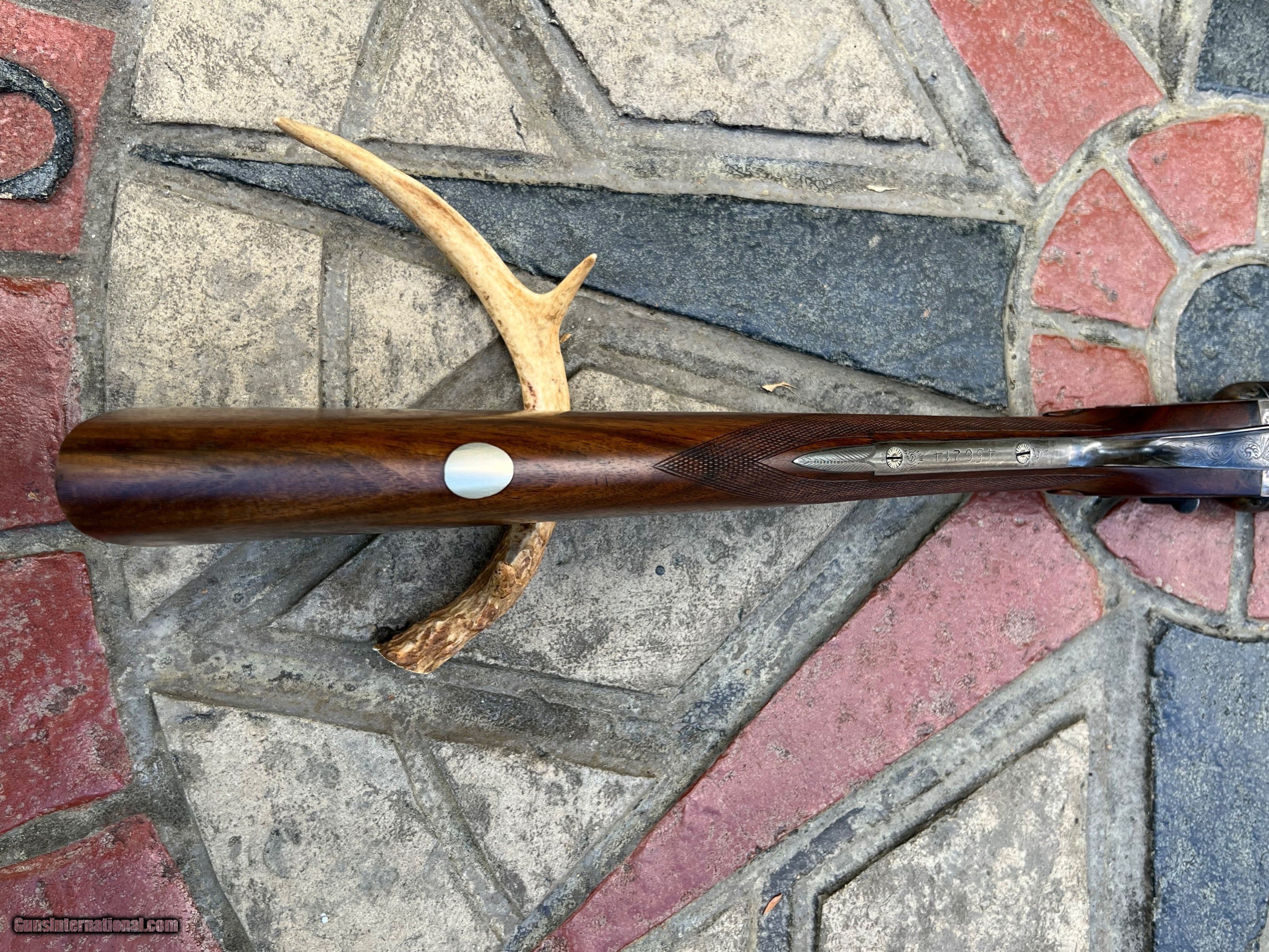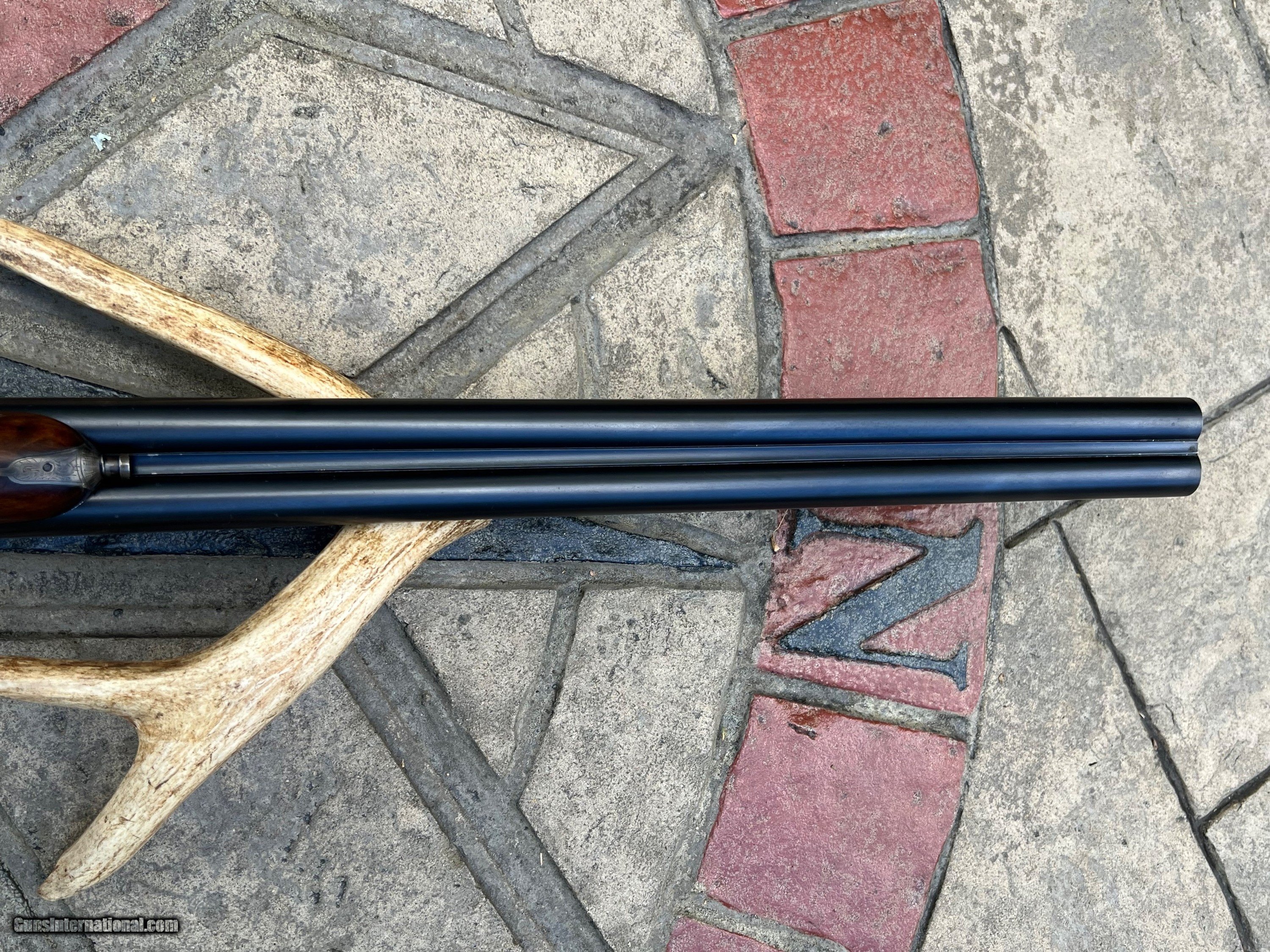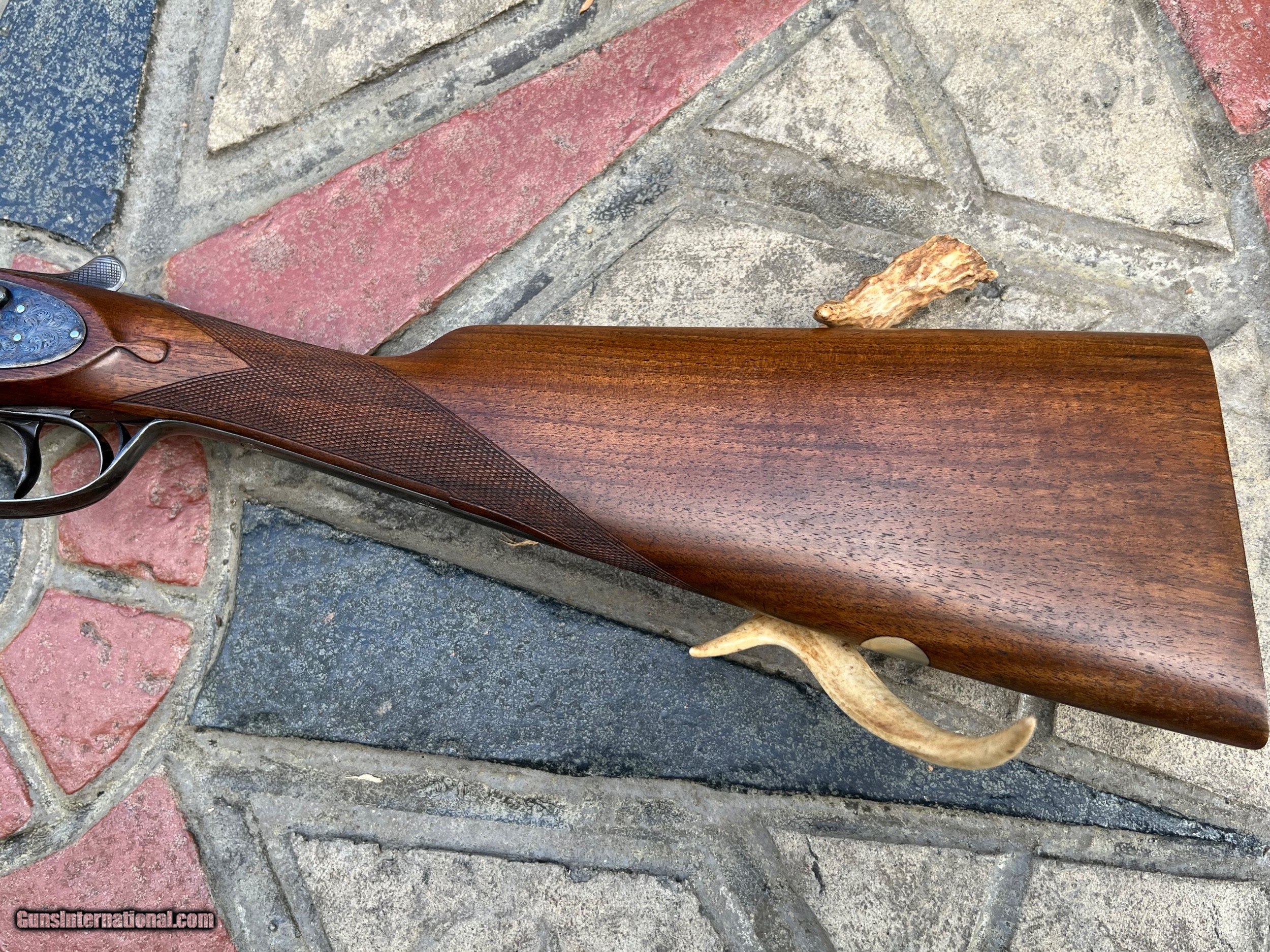 Description: Very Nice AYA Model No. 2 12 gauge with 26 inch barrels, 2 3/4 inch chambers choked Improved Cylinder and Cylinder. Barrels have possibly been shortened to open the chokes but look uncut. Length of pull is 14 5/8, Drop at Comb is 1 1/2 and Drop at Heel is 2 7/16. Locks up tight on face, pristine condition with almost no handling marks. Weight is 6 lb. 9 0z. Cast off for right handed shooter. Hand detachable side lock, strong well timed ejectors, very nice engraving, checkered butt and straight grain walnut stock, no case. Manufactured in 1972 during the golden age of Spanish guns. This is a fast handling, great bird gun that's ready to hunt. Thank you for looking. Insured shipping is $65 to FFL Dealer. Payment by check, certified check or money order. Three day inspection period. SOLD Shotgun Gauge: 12 Gauge Manufacturer: AYA Model: No. 2 Chambers: 2 3/4 Ejectors: yes Condition: Excellent Metal Condition: Excellent Wood Condition: Excellent Bore Condition: Excellent Stock: Straight Stock Comb: 1 1/2 Stock Heel: 2 7/16 Stock Cast: off Fore End: Splinter Butt Pad: Checkered LOP: 14 5/8 Weight: 6 lb 9 oz Sights: front bead Choke Left: Light Mod Choke Right: Cyl Engraving: Yes Case: No |
