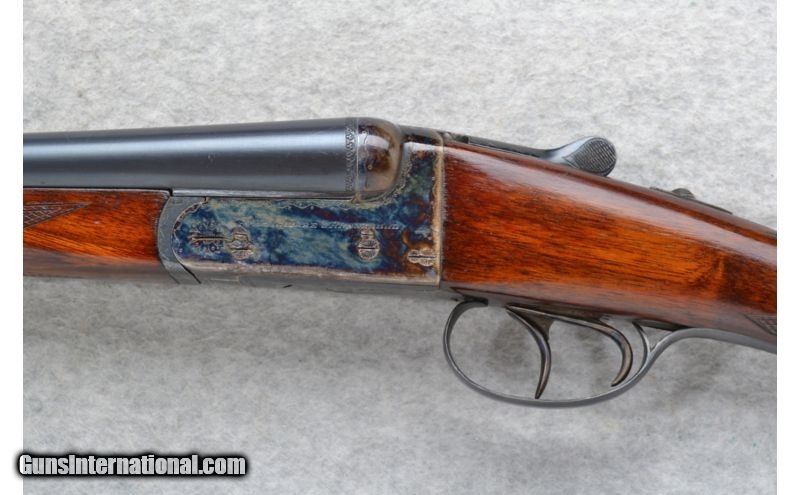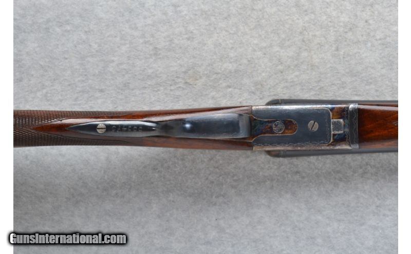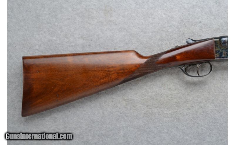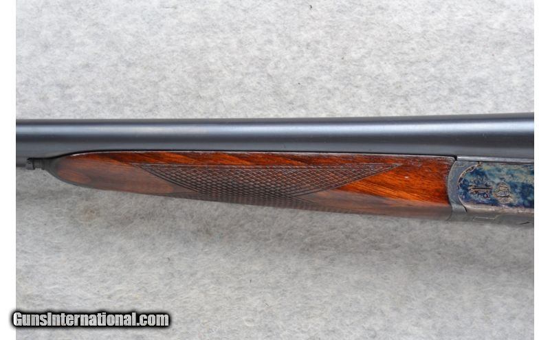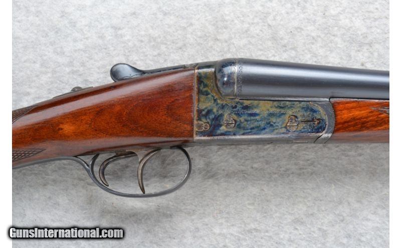 Description: SOLD Manufacturer: Made in Spain. Caliber Info: 20 GA Chambers: 3 inch. Metal Condition: Good. Light wear. Minor handling marks. A couple of minor freckling spots. Wood Condition: Good with multiple handling marks. Bore Condition: Very clean, bright and shiny. Barrels: 27 inches with a solid rib. Triggers: Double Stock: Checkered grip walnut straight stock. Case colored receiver. Stock Dimensions: LOP 14 1/4 inches. Fore End: Checkered grip walnut. Butt Pad: Diamond checkered in buttstock end. Weight: 5 lbs. 8 oz. Sights: Brass bead front. Chokes: Fixed Mod. and Cyl. Extras: Wooden carry box. Item Location: Richfield, WI |