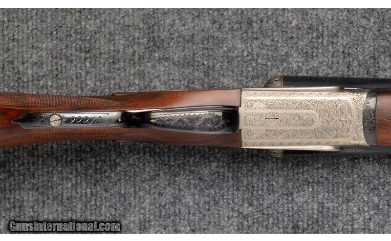 Description: For your consideration, an AYA side by side chambered in 12 Gauge. This piece is part of a two gun set, its companion being SKU 3470246. Frame, trigger guard, lever, and rib all feature dense foliate scroll engraving. Furniture consists of a semi-beavertail forend retained by Deeley type release and a round knob stock with blank German silver escutcheon at toe line and checkered butt. Stock measurements are as follows: 1 1/2" drop at comb, 2 5/16" drop at heel, and 14 1/8" LOP with slight cast off. The right trigger guard edge is rolled. Both guns are housed in a combo locking, two gun hard case. The set dates to 2001. 12 Gauge SOLD Chambers: 2.75 Metal Condition: Excellent Wood Condition: Excellent Bore Condition: Excellent Barrels: 28 Triggers: Double Stock Dimensions: 14 1/8" LOP Fore End: Checkered Butt Pad: Checkered Wood Weight: 6.75 lbs Sights: Solid Rib and Bead Chokes: "Right, Cylinder / Left, Modified Item Location: Hamburg, PA |