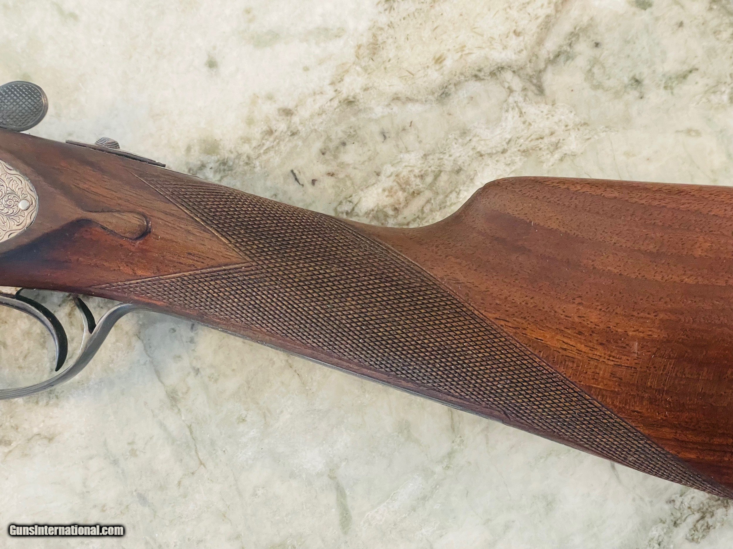 Description: Excellent condition AYA No 2- 20 gauge offered at a massive discount. These guns cost over $8K new now in almost the same condition. Perfectly balanced at the pin. Tight action and crisp trigger pulls. Sharp checkering. No pitting or oxidation anywhere on the gun. Clean bores and chambers. No dents, dings, or repairs ever made. 786-375-1709 27” barrels 14 3/4 LOP 1 1/2” DAC 2 1/4” DAH 5lbs 13ozs IC/M Choked 2 3/4” Chambers Ejectors $3995 shipped Fedex SOLD |