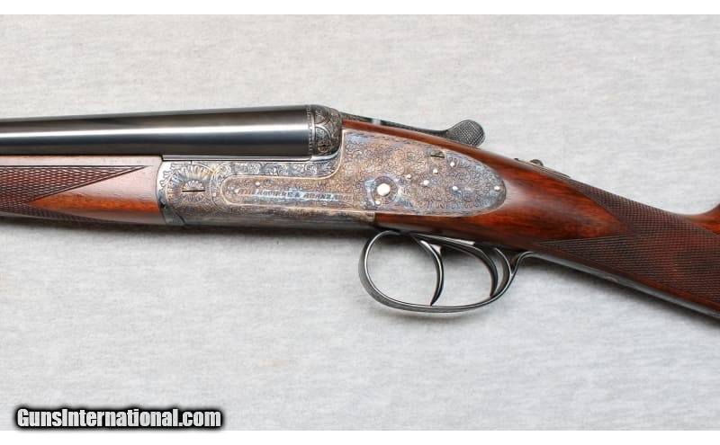 Description: AYA No.2 Sidelock Round Body in 28 Gauge. Mechanically identical to the No.1, the No.2 was originally modelled on the renowned Holland & Holland Royal sidelock action. This is a very popular model in the AYA range, offering superb balance, delightful handling, exceptional reliability. this shotgun has a round bodied colour-hardened actions, with 27" barrels choked Cylinder and Improved Cylinder. It features double triggers. 28 Gauge SOLD Chambers: 2 3/4 inches Metal Condition: Excellent Wood Condition: Excellent Bore Condition: Bright Barrels: 27 Inches Triggers: Double triggers Stock Dimensions: LOP 15 Inches from front trigger Fore End: Checkered walnut Butt Pad: Checkered walnut Sights: Single silver bead on rib Chokes: Cylinder/Improved Cylinder Item Location: La Vista, NE |
