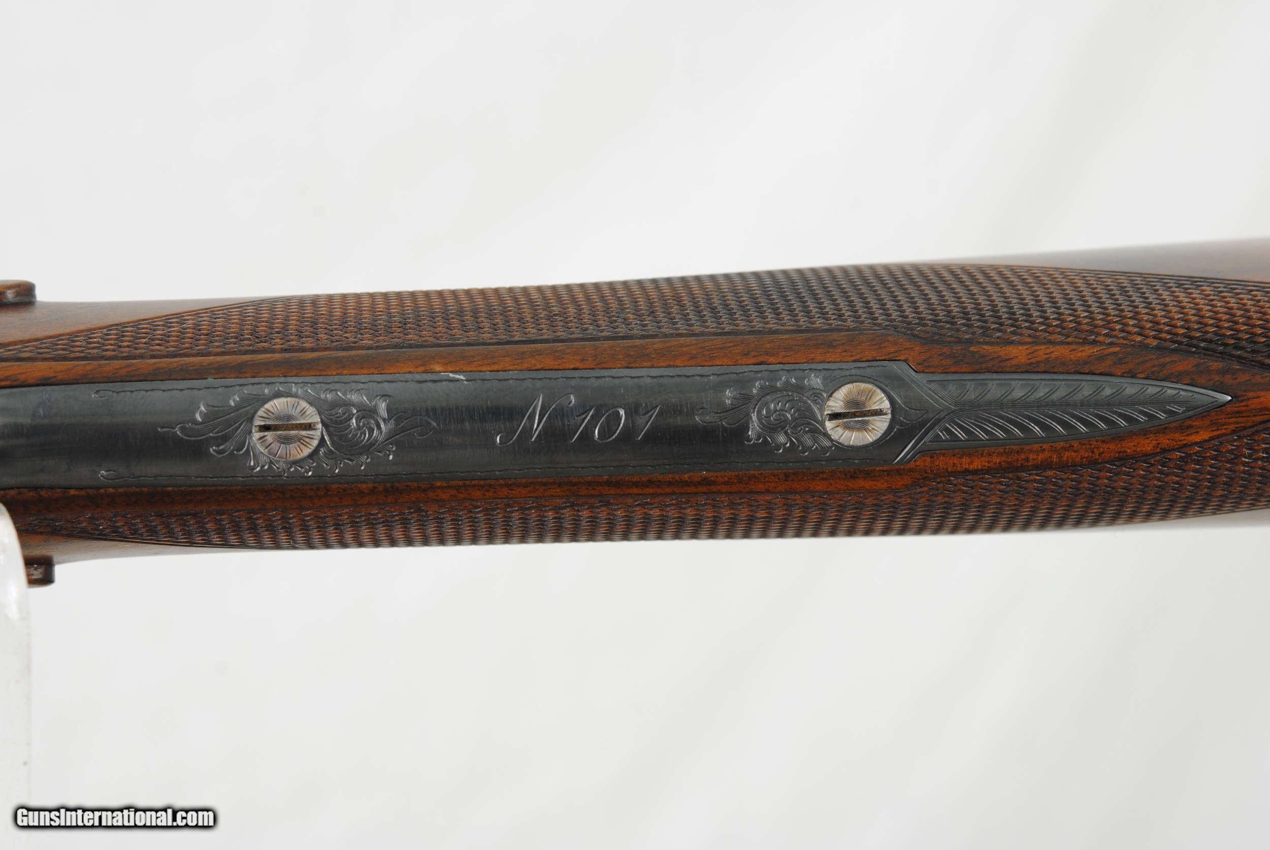 Description: AYA Number 2 in 12 gauge. This gun remains in mint condition with zero appreciable wear. Tight scroll engraving. Case color and blue at 100%. New England Custom Gun Import. Hand detactable locks. Straight grip with long rolled edge trigger guard tang. Gold oval with initials. Articulated front trigger. Barrels are 28". Right bore measures .730 with Skeet (4/1000) choke. Left barrel is .727 with Modified (17/1000) choke. Chambers are 2 3/4". Closes like a bank vault. LOP is 13 5/8" to a Factory checkered butt. Drop at comb is 1 13/16". Drop at heel is 2 1/8". Shipping is $50. SOLD Shotgun Gauge: 12 Gauge |