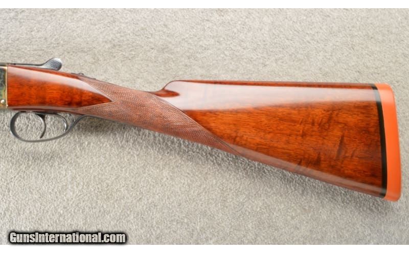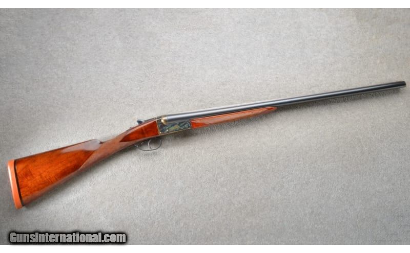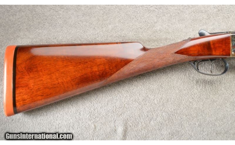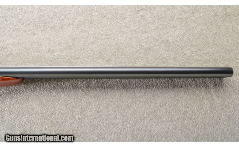 Description: AYA Model 433512371 20 gauge side-by-side shotgun, manufactured in Spain for Sears & Roebuck. This shotgun features walnut furniture with cut checkering, a color case-hardened receiver with decorative engraving in areas, blued 26 7/8" barrels choked (Left-Full, Right-Mod), extractors, auto safety with barrel selector. Comes with the factory hard travel case, cleaning kit, oil bottle and patches. This shotgun is in overall great condition. 20 Gauge SOLD Chambers: 3" chambers. Metal Condition: Excellent. Wood Condition: Excellent. Bore Condition: Bright smooth bores. Barrels: 26 7/8" barrels. Triggers: Two. Stock Dimensions: LOP 15 1/8". Fore End: Splinter. Butt Pad: Rubber. Weight: 6.5 lbs Sights: Bead. Chokes: Fixed. Item Location: Owatonna, MN |