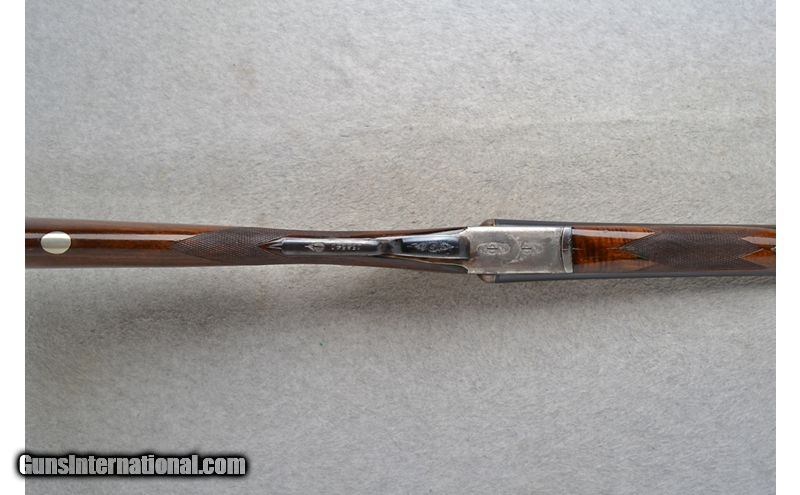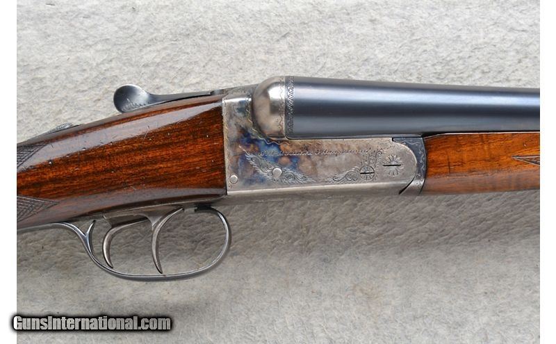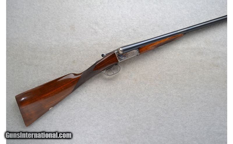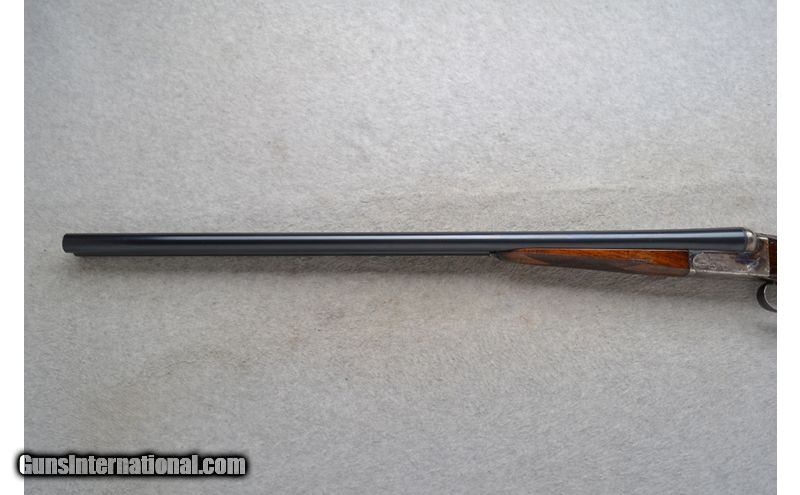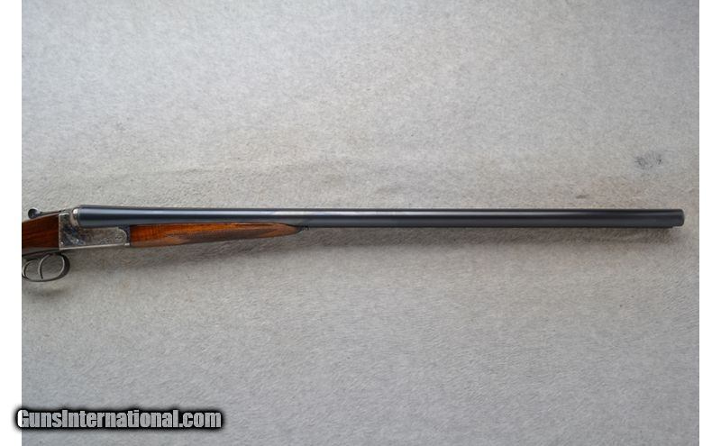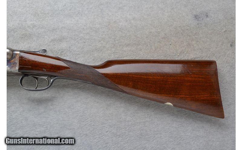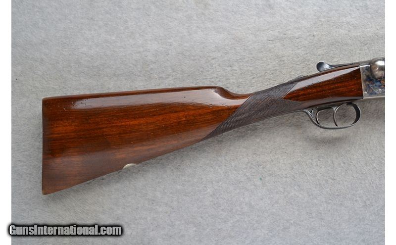 Description: This AYA Side by Side Model is a 12 Ga. shotgun. It has 28 inch barrels with ejectors and a solid rib. With 2 3/4 inch chambers it has fixed Full and Modified chokes. A metal bead front sight. The butt stock is a checkered grip walnut straight grip. The forearm is a checkered grip walnut splinter. It has double triggers. The receiver is case colored and lightly engraved. S/N 158540. 12 Gauge SOLD Chambers: 2 3/4 inch. Metal Condition: Very good. Minor handling marks and a couple of freckling spots. Wood Condition: Fair. Many handling marks. Appears refinished. Bore Condition: Shiny. Barrels: 28 inches with ejectors and a solid rib. Triggers: Double. Stock Dimensions: LOP 14 3/4 inches. Fore End: Checkered grip splinter. Butt Pad: Checkered end. Weight: 6 lb. 8 oz. Sights: Metal front bead. Chokes: Fixed Full and Mod. Item Location: Bristol, TN |