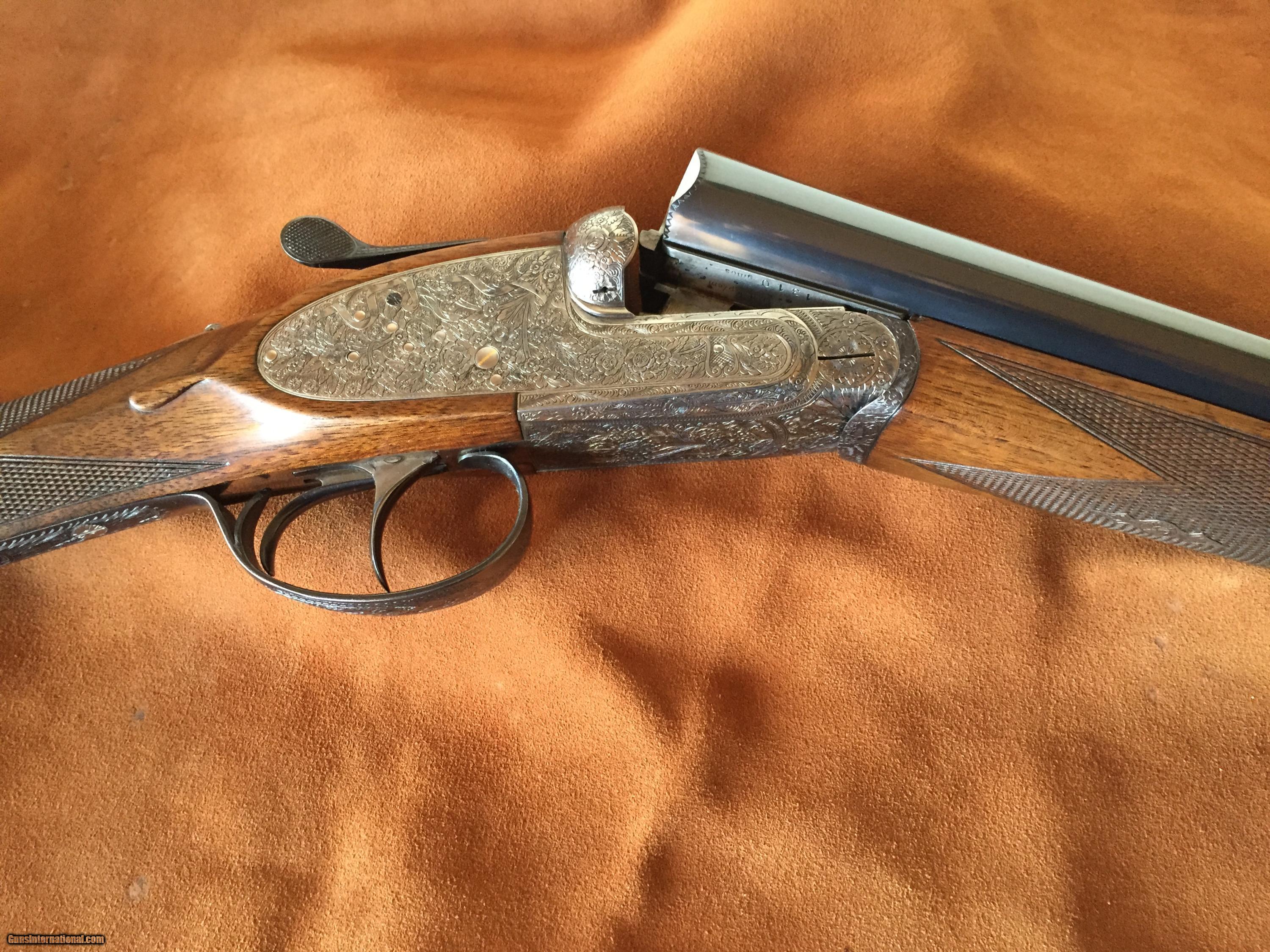 Description: AyA model 53, full sidelock SxS 12 ga shotgun. This fine example is case colored, nice wood upgrade, sideclips, 28" Ic/M barrels, swamped rib. Excellent plus condidtion, used very little. SOLD Manufacturer: AyA Model: 53 Caliber Info: 12 Condition: Excellent Plus |