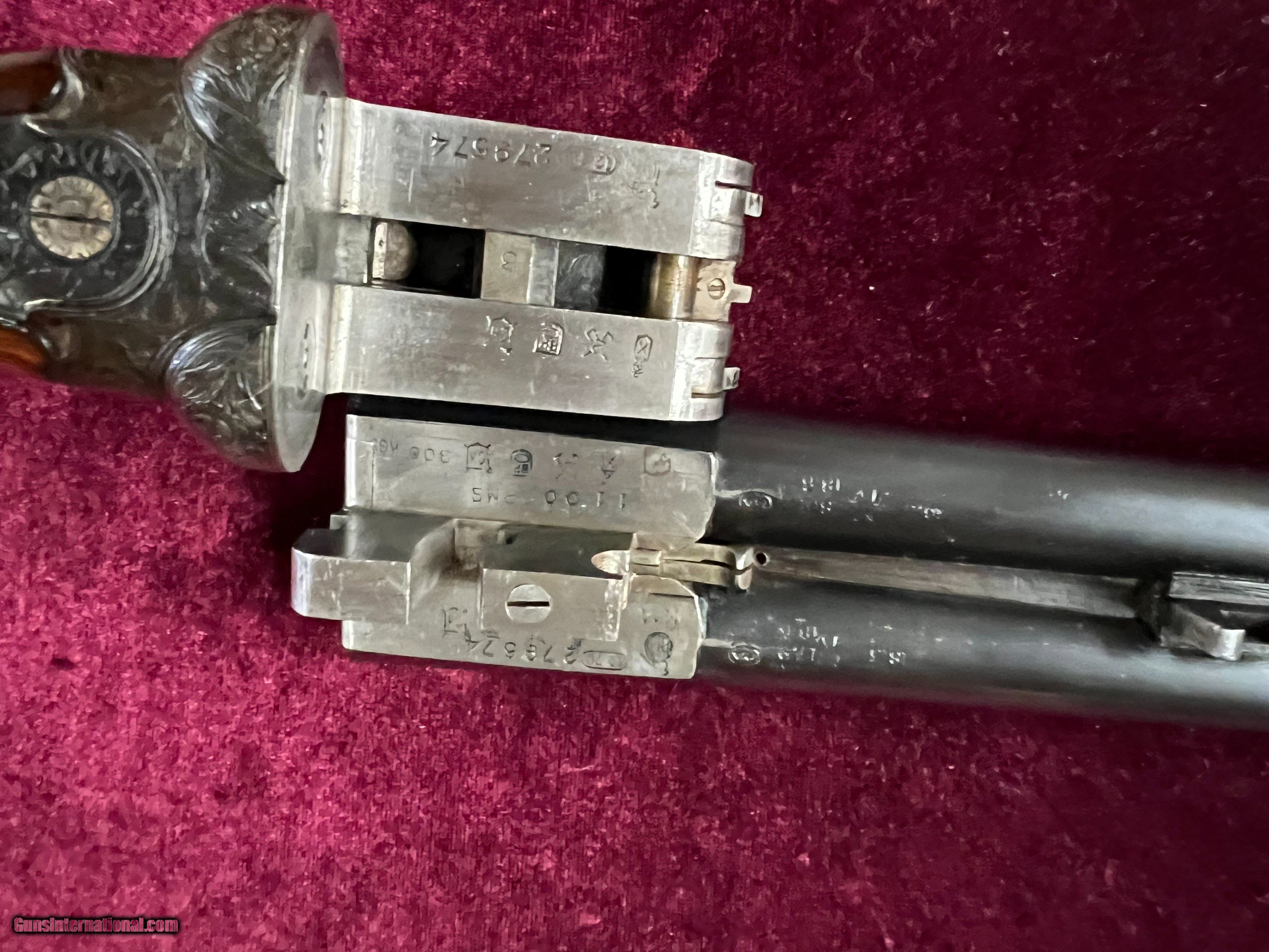 Description: Hello all. In this listing we are selling a beautiful Aguirre y Aranzabal Model 25. This spanish side by side is chambered in 20GA with 25" barrel with Skeet and Improved Cylinder chokes. The bores are mint, with the barrel blue at 95% and a 95% fully engraved receiver that is tight as new with auto ejectors. The wood is fine with crisp checkering and a 14 1/4" length of pull. The gun weighs in at 5lbs 10oz. If you have any questions or would like additional photos please feel free to contact us. Buyer pays shipping. We charge 3% on all card transactions. We are selling this gun below wholesale at $1695. SOLD Shotgun Gauge: 20 Gauge Manufacturer: AYA Model: 25 Serial Number: 279574 Barrel Length: 25 LOP: 14 1/4 Chokes: SK/IC |