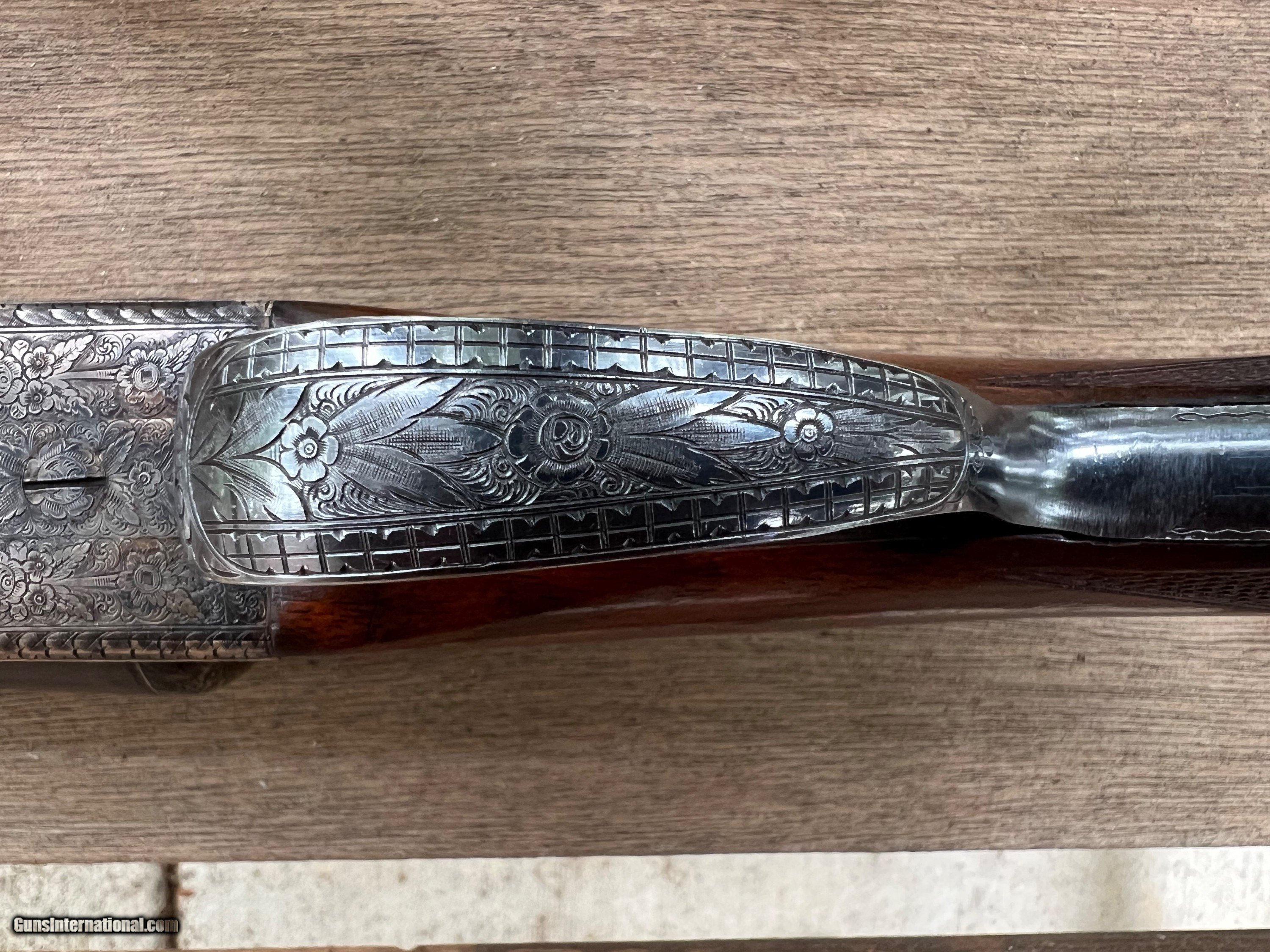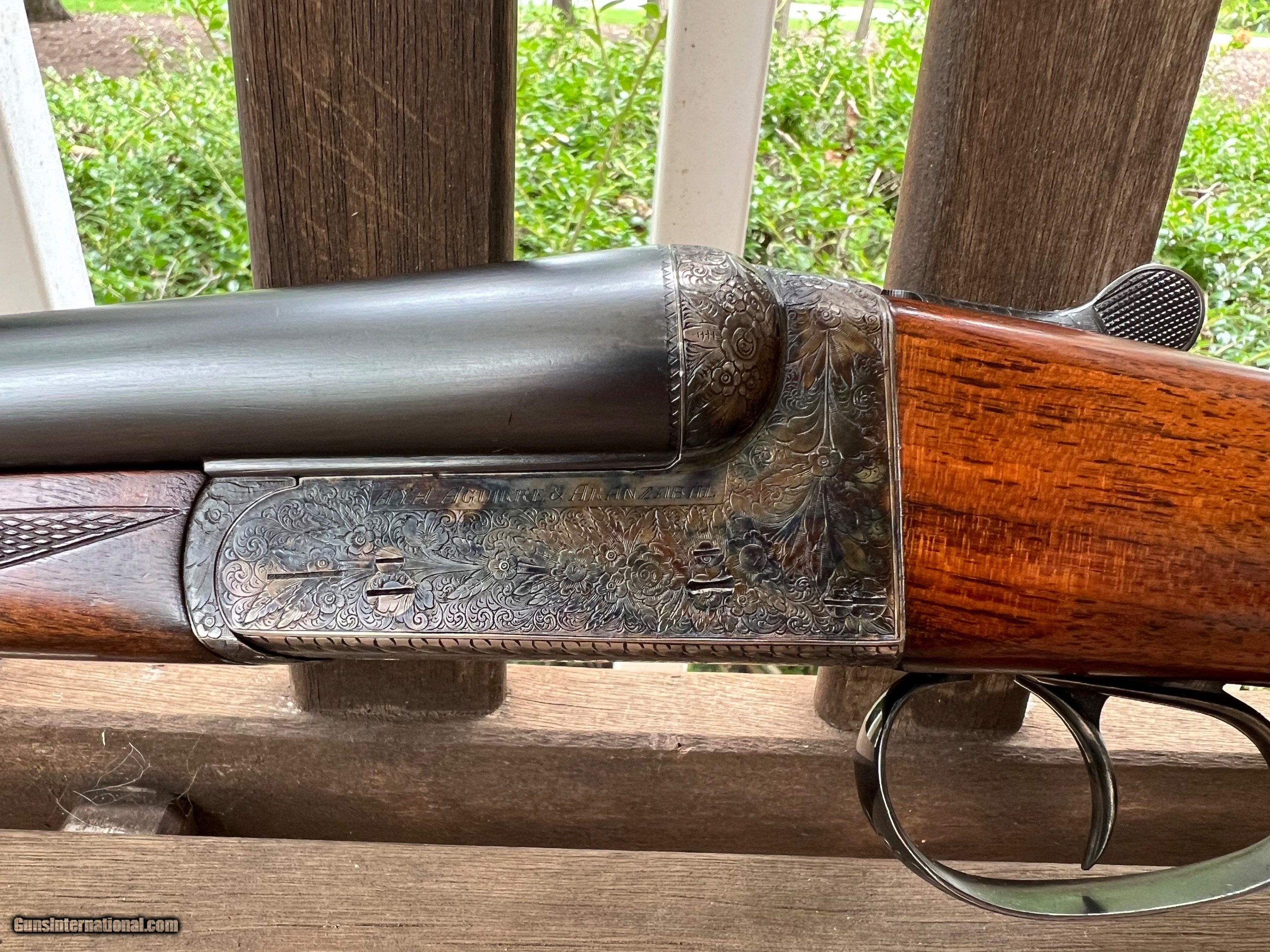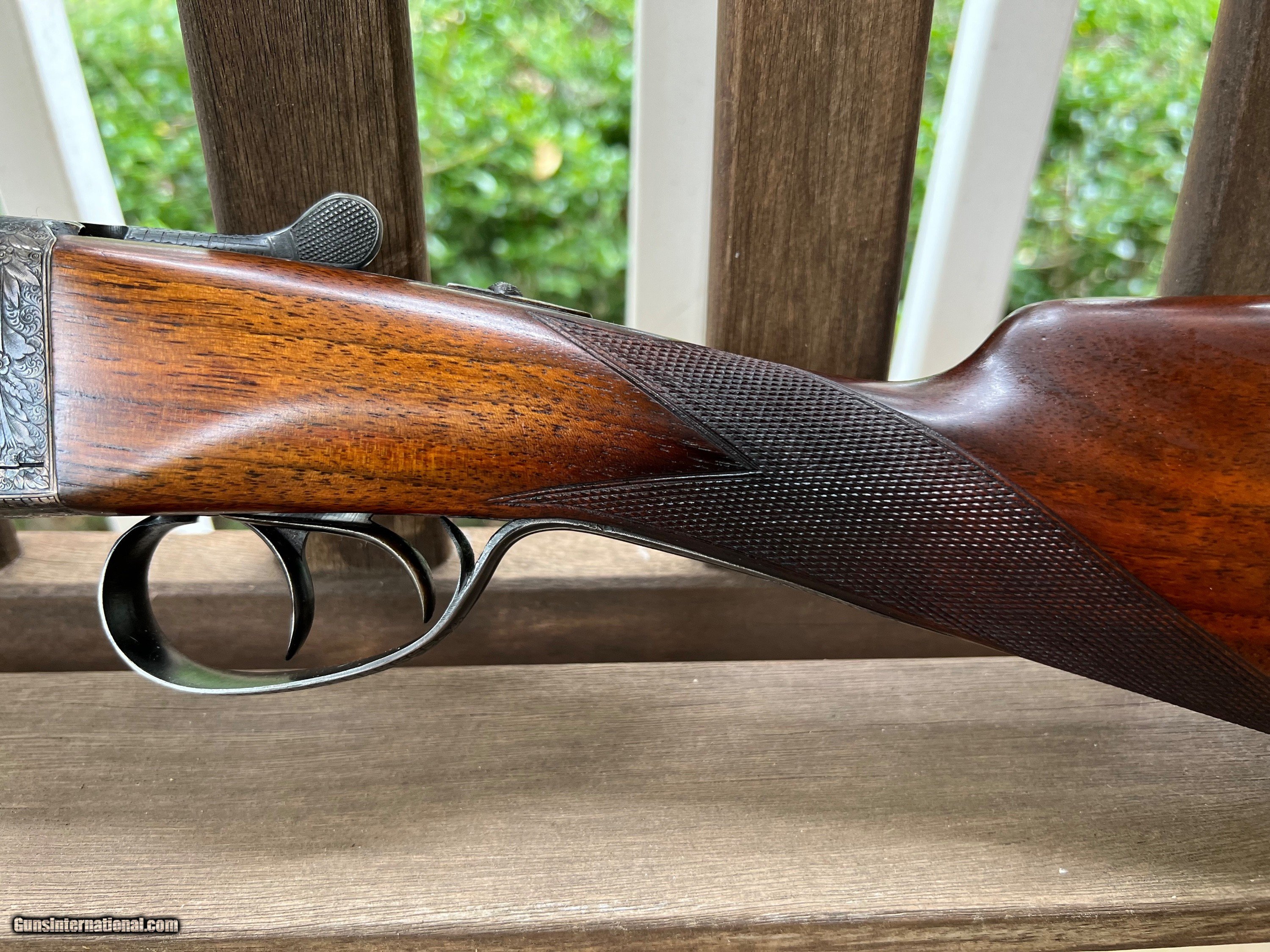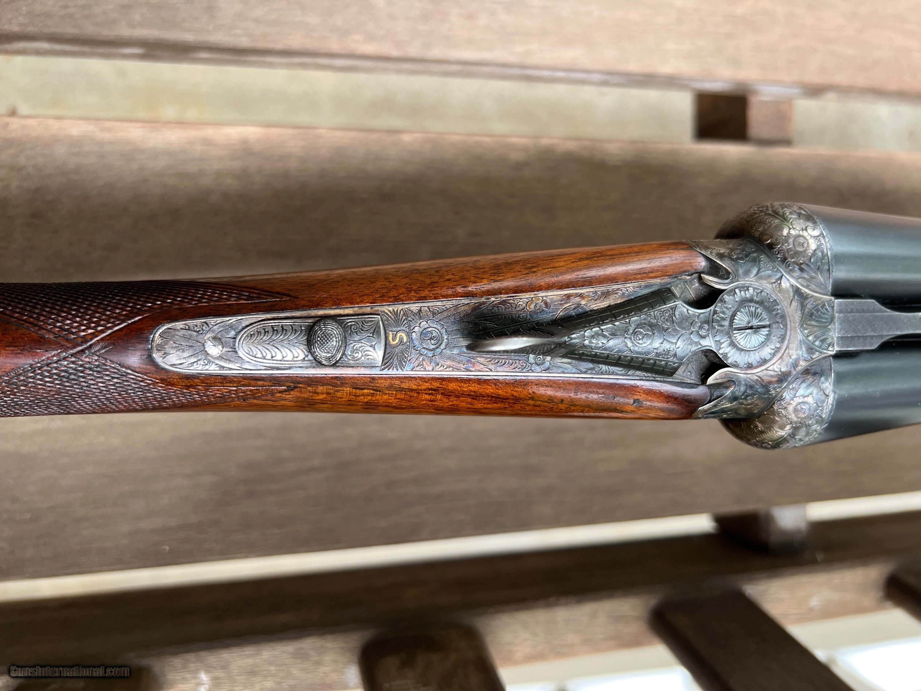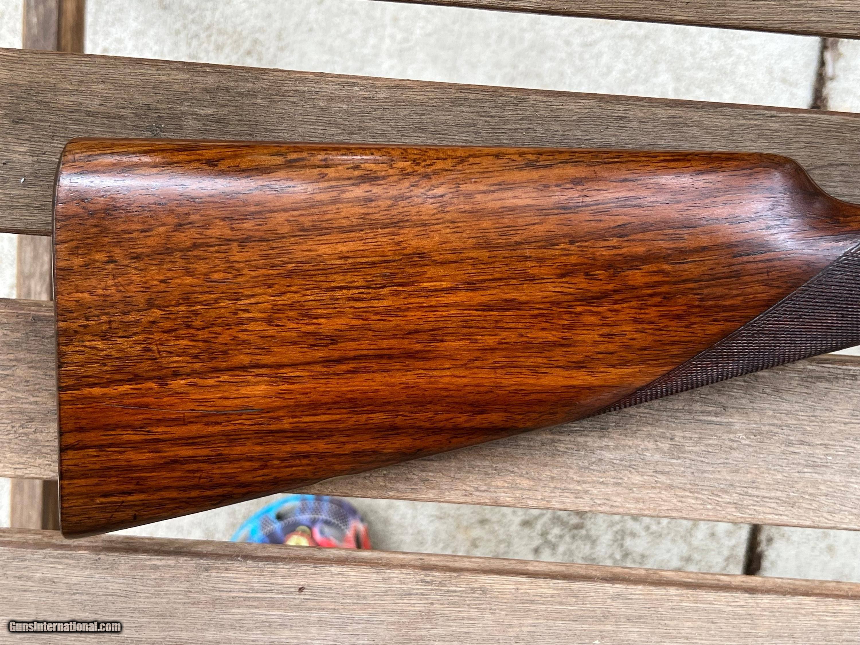 Description: Very high condition AYA XXV in excellent condition with only minor handling marks. The E. J. Churchill XXV was a 25 inch barreled gun developed by the English shooting instructor Robert Churchill and was one of the most famous English guns of the early 20 th century. Excellent mechanical condition, locks up tight and on face, all numbers matching, 100 percent hand cut engraving, chopper lump barrels, strong well timed ejectors, raised hand filed rib and checkered butt. Its 25-inch barrel and great dimensions make this a fast handling bird gun. Barrel is 25 inches choked Modified/Improved Cylinder. Dimensions are 14 1/4 LOP, 1 1/2 DAC and 2 1/4 DAH and the gun weighs in at only six pounds one ounce so it's a pleasure to carry all day. This is a fantastic gun for grouse or woodcock and a joy to hunt with or bust clays. Shipping is $50 and payment is personal check, certified check or postal money order. Three day inspection period. Shipping is $50 and no sales to California. Please see my other listings. SOLD Shotgun Gauge: 12 Gauge Manufacturer: AYA Model: XXV Barrel Length: 25 inch Chambers: 2 3/4 Ejectors: Yes Condition: Excellent Metal Condition: Excellent Wood Condition: Excellent Bore Condition: Excellent Triggers: Two Stock Comb: 1 1/2 Stock Heel: 2 1/4 LOP: 14 1/4 Choke Left: Modified Choke Right: Improved Cylinder Engraving: Hand Cut |