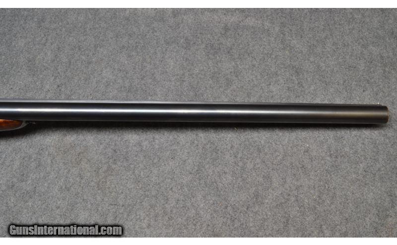 Description: This break-action side by side shotgun is an Aya XXV Side Lock, chambered in 12 GA. It has twin 25" blued steel barrels, walnut furniture with checkered grips, and intricate floral engravings on the receiver. This Aya XXV Side Lock is in very good condition. SOLD Caliber Info: 12 GA. Chambers: Break-action side by side shotgun. Metal Condition: Very good. Few signs of use and wear. Wood Condition: Very good. Few sings of use and wear. Bore Condition: Very good. Barrels: Twin 25" blued steel barrels. Triggers: Dual metal triggers. Stock: Walnut butt stock with checkered grip. Stock Dimensions: 14" LOP, 1-3/4" DAC, 2-1/2" DAH. Fore End: Walnut fore end with checkered hand grips. Butt Pad: 1/4" black recoil pad. Weight: 6lbs-8oz. Sights: Front bead sight. Chokes: Right barrel choked at IM, left barrel choked at M. Item Location: Wichita, KS |