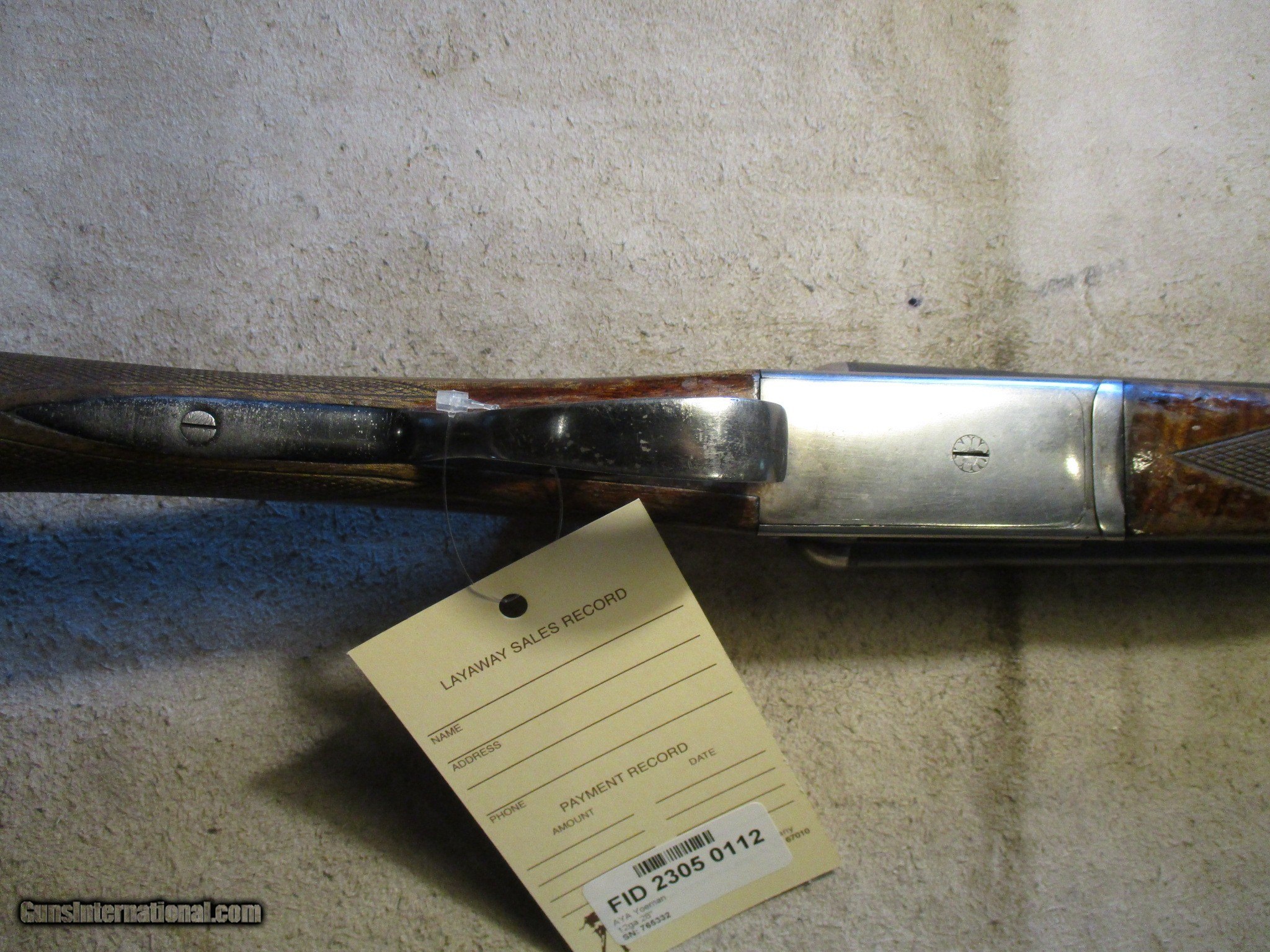 Description: AyA Yoeman Boxlock, 12ga, 28" barrels, Double triggers and extractors. Fixed chokes that are MOD and FULL, 2.75: Chambers. Factory butt, LOP Is 14 3/4". Nice classic gun, no rust, perfect bores. SN is 7653xx. We will trade for silver and gold. We accept personal check, any certified funds, -Venmo or -Zelle. We can also take your credit card, +3%. Email me if you would like these pictures sent to you, they will come through bigger and better than on the listing page here. We do offer Layaway. Our standard terms are 25% down, 90 days. Initial deposit is not refundable. Email me with any questions. Please check your local laws to confirm it is legal to own in your state! Buyer pays $60 shipping and insurance in a brand new PLANO hard case to your FFL in the lower 48. AK, HI or PR is extra. I will ship to California, as long as it is legal, NO PROBLEM! All my guns come with a non-firing, 3 day unconditional return privilege, from the day UPS delivers to your dealer. Buyer pays shipping both ways if the gun comes back. Please make sure to make it to your FFL to inspect within the 3 days. I am a licensed FFL, and will include a copy of my FFL with the gun for your dealer’s records. I will ship to a C&R if the gun is eligible. I will ship to California, but you need to confirm the gun is legal where you are, California or other. WE BUY AND CONSIGN GUNS AND GUN COLLECTIONS! We will travel to pick up collections! I am always looking for good clean, old original Winchesters to buy, consign, or trade, especially Pre '64's model 70's and model 54's. WE ALSO TRADE FOR CLASSIC CARS AND TRUCKS! We also trade for gold and silver. SOLD Shotgun Gauge: 12 Gauge Manufacturer: AyA Model: Yeoman Barrel Length: 28 Condition: Used |