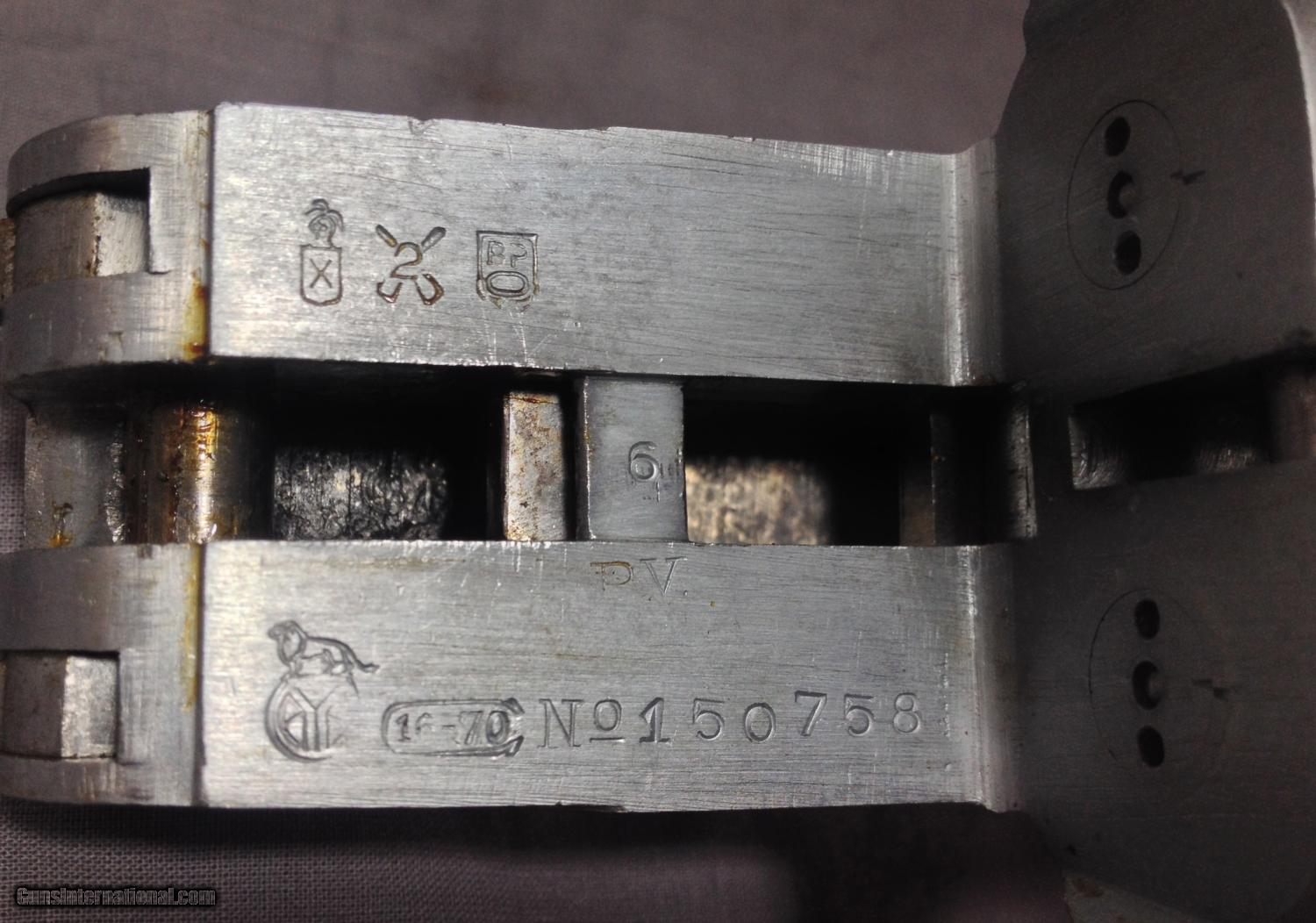 Description: SOLD!!! AYA 16GA with bush set strikers and brazed chopper lump barrels. Nice handeling 2 3/4in 16ga game gun. Locks up tight, barrels ring, ready to go gun! Please call Mark 715-814-1295 715-571-3006 Pack and ship $45 LAYAWAY: Layaway is available with 1/3 down of final total price including shipping/insurance within 7 days . Balance due in 45 days. Layaway is FINAL with no refunds, no inspections, no returns. SOLD Curio/Relic: Yes Manufacturer: AYA Serial Number: 150758 Chambers: 2 3/4IN Metal Condition: EXCELLENT Wood Condition: EXCELLENT Barrels: 27 1/2IN (70CM) Barrel Type: BRAISED CHOPPER LUMP Gauge Info: 16GA Stock Comb: 1 11/16IN Stock Heel: 2 7/8IN Stock Cast: RIGHT HAND LOP: 14 5/8in Weight: 6LBS Manufacture Date: 1962 Choke Left: FULL Choke Right: MOD |