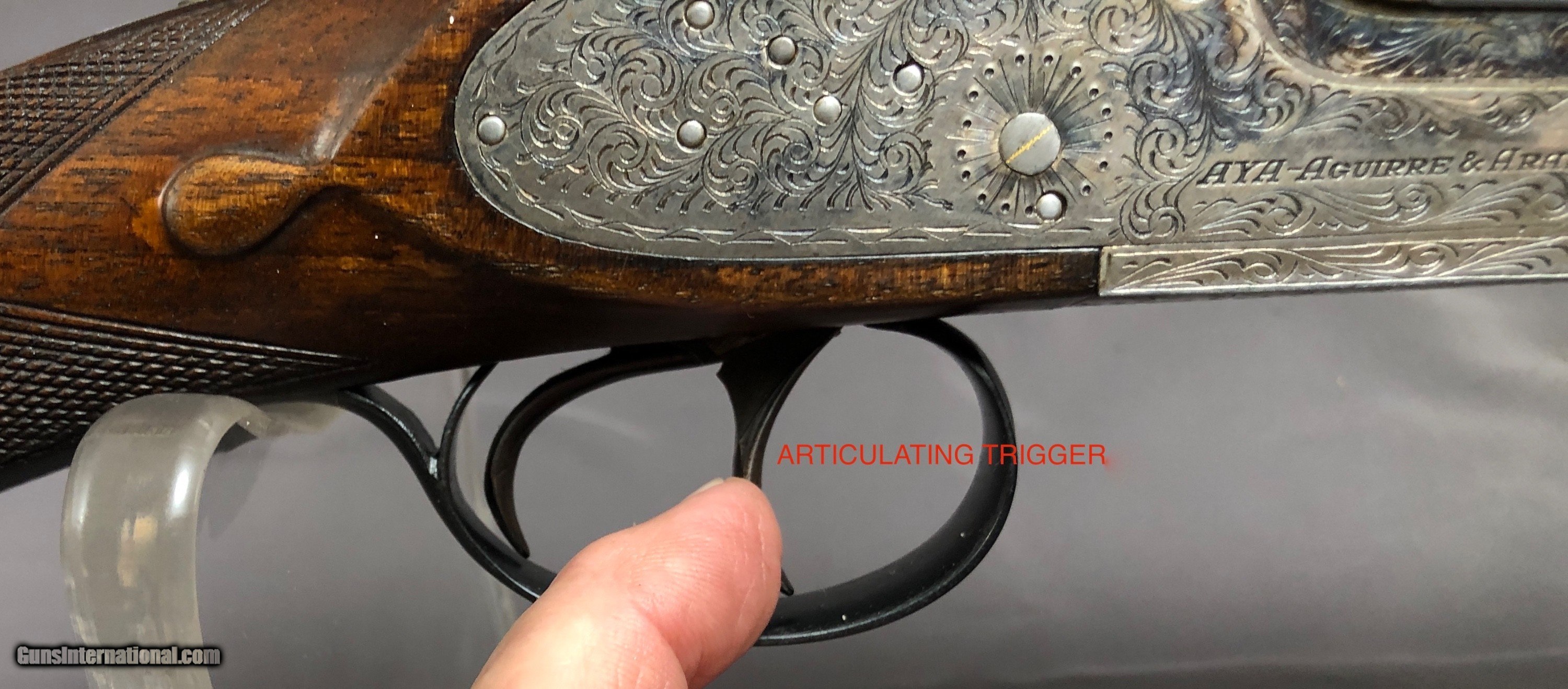 Description: Sold !!! A great 20ga Sidelock birdgun in great mechanical and cosmetic condition. Chopperlump barrels. Bush set strikers. Ejectors. Hand detachable Locks. Articulating front trigger. Rolled edge trigger guard. Please call Mark 715-814-1295 Pack and ship $65 LAYAWAY: Layaway is available with 1/3 down of final total price including shipping/insurance within 7 days . Balance due in 45 days. Layaway Sales and guns modified at time of sale are FINAL with no refunds, no inspections, no returns. SOLD Manufacturer: AYA Model: #2 Barrel Length: 27 IN Chambers: 2 3/4IN Ejectors: YES Condition: GREAT Metal Condition: GREAT Wood Condition: GREAT Bore Condition: BRGHT Action: HAND DETACHABLE SIDELOCK Stock Comb: 1 3/8IN Stock Heel: 2 1/8IN Stock Cast: OFF FOR RIGHTY Butt Pad: WOOD LOP: 14 3/4IN Weight: 6LBS 3OZ Manufacture Date: 1976 Choke Left: MODIFIED Choke Right: IMP/CYL |