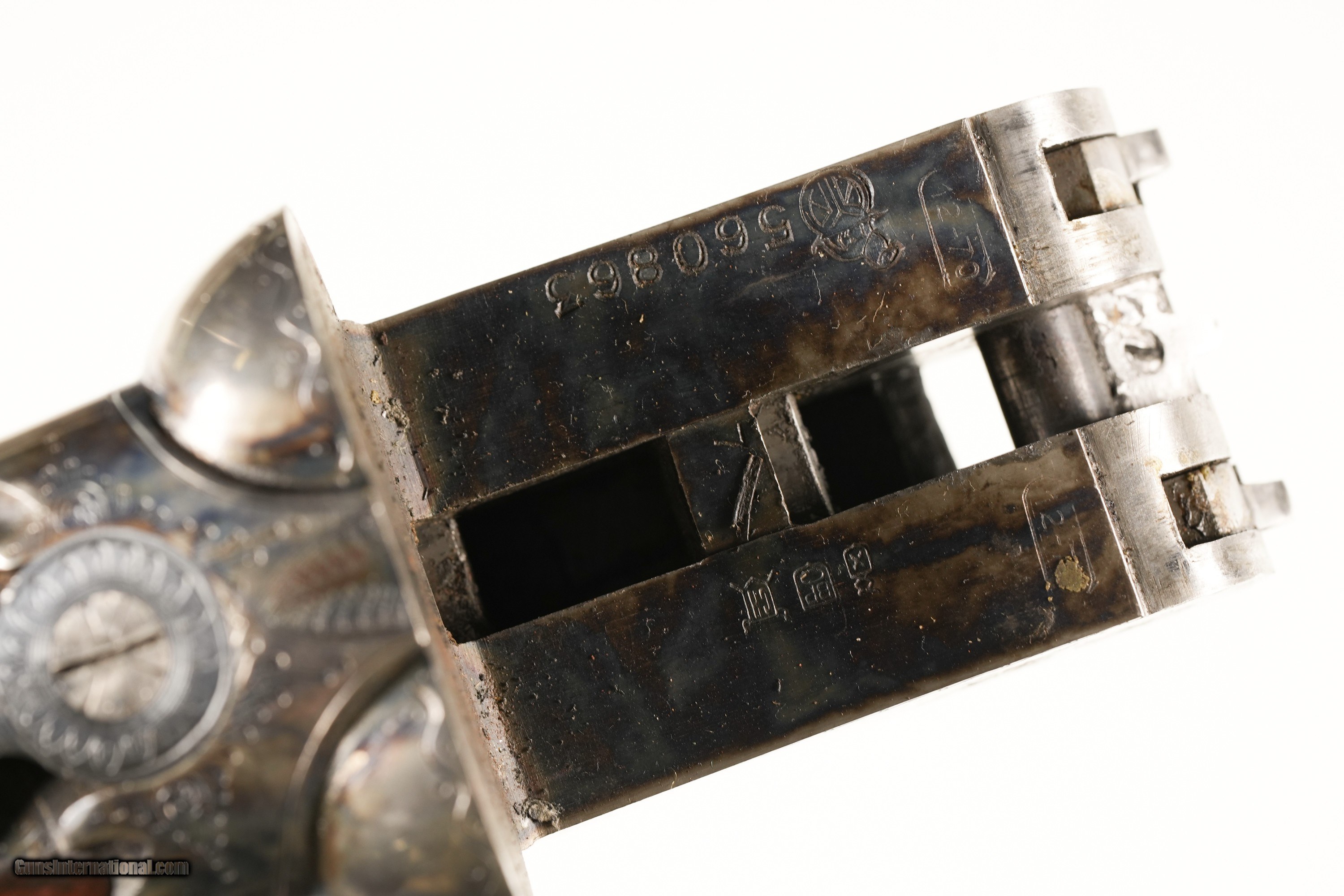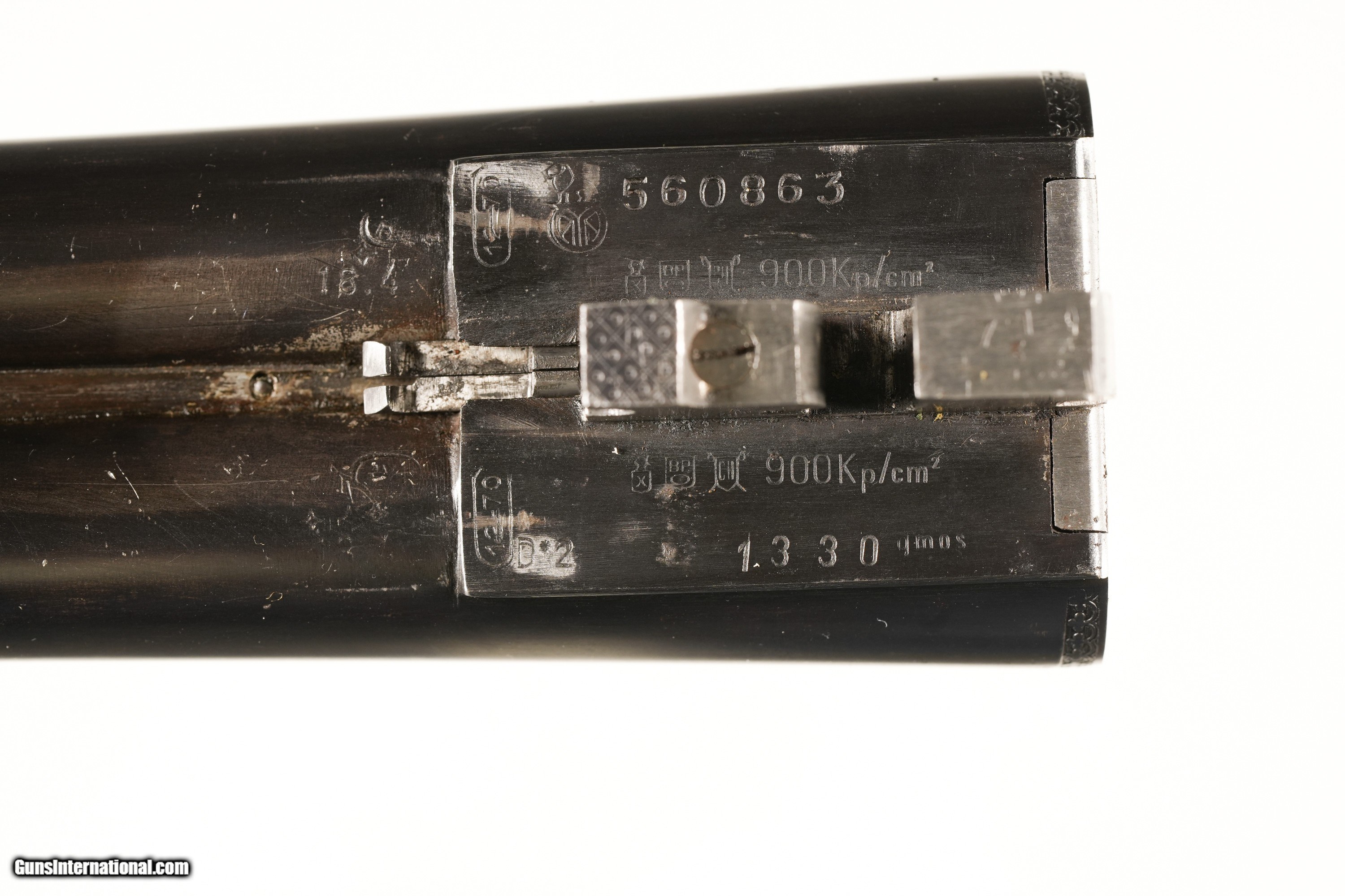 Description: AYA No4 12 Bore double with 28" Bbls choked Full & Mod with 2 3/4" chambers. Double triggers with ejectors, Scroll engraved case colored receiver with varnished English straight stock with checkered butt. 14 1/4" LOP 1 1/2" DAC 2 1/8" DAH 6 pnd 7 oz. Condition, Very fine with some light finish loss at muzzle bright bores. Case colors are very fine with some edge wear. stocks are very good with some varnish loss on forearm and impressions in butt. Mechanically fine • Free Shipping, No Credit Card Fees. • Lay-a-way available for this firearm. • 1/3 Down, a 1/3 in 30 Days, 1/3 in 60 Days. SOLD Manufacturer: AYA Model: No. 4 Serial Number: 560865 Barrel Length: 28 |