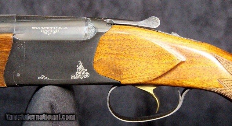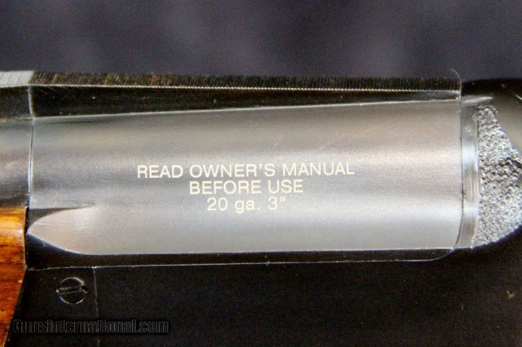 Description: 20GA, #022700448 B, OU, 26 1/2 inch barrels, blue finish, hardwood stock and forearm, vent rib, 14 1/2 inch LOP, M over F. Condition: as new, unfired SOLD |