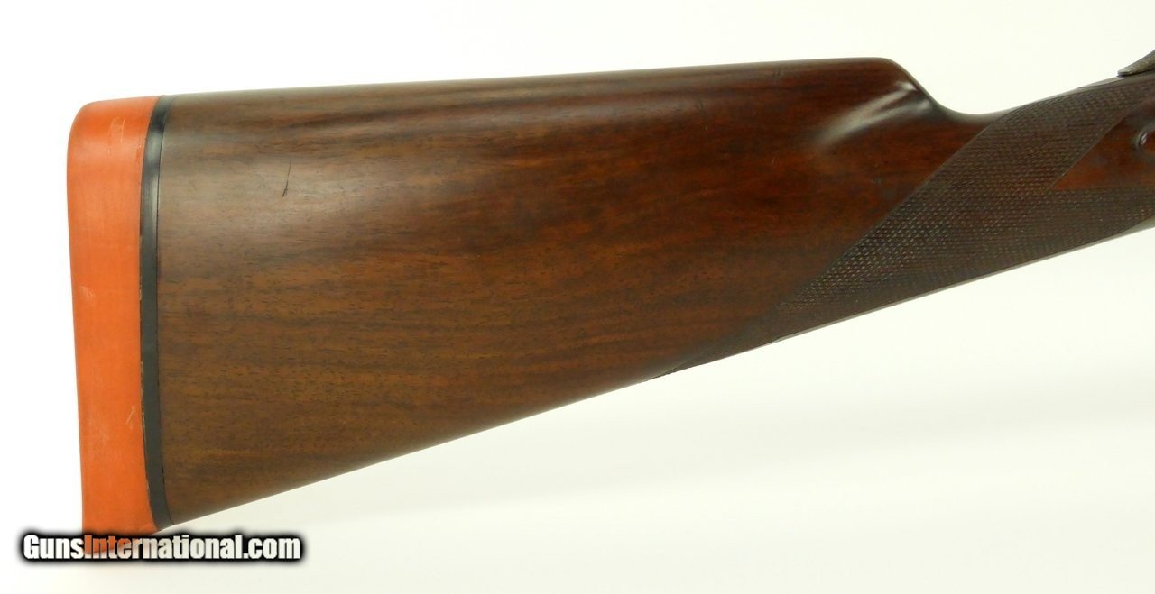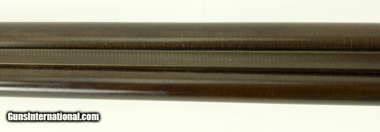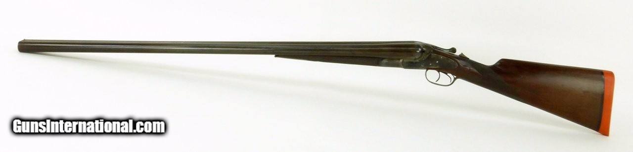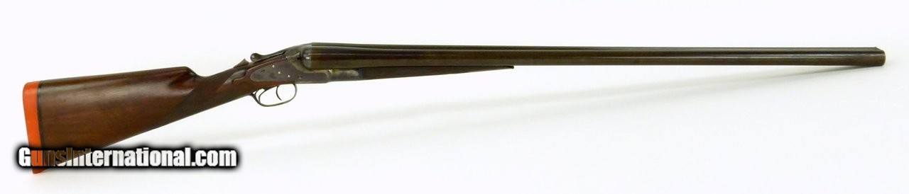 Description: "Baker Gun Co. Batavia Leader 10 Gauge shotgun. Batavia Leader Damascus 10 gauge double with excellent bores. Gun locks up tight. No hinge pin looseness. Barrel length is 32". Barrel have very good Damascus pattern except left barrel which has lost about 21" of its pattern. Metal is fine with only light etching from some rust long ago near the the part of the barrel where the patter was lost or cleaned off. Stock and checkering are excellent. Gun is about very good condition overall. SOLD |