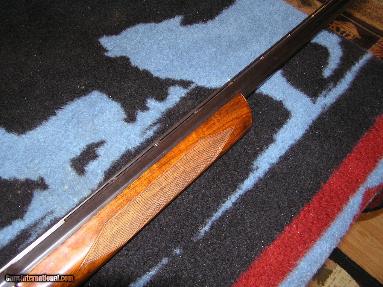 Description: Very early twin pin model Sterling grade sgl bbl trap shotgun. 32" 1/2 oct, tapered rib twin white beads. Bore has very small area of shallow pitting 1/3 way down and bore is shiny all of the way,Super tight action, Lever slightly right of center. Walnut dowel reinforcement thru weak portion of grip area, nicely done. Small repair at foreward end of forend, orig piece replaced (shown). 13 5/8 LOP over decelerator pad. Appears to have been reblued at some point in time. These guns were built to take a lot of punishment, read online Baker Collectors or the Trapshooter forum. No two were built the same. I also have a complete early action and fore iron for same available. Each were ordered to customer's specifications then built and delivered. I have another Sterling grade with profuse engraving and gold retriever, geese inlays and "C" grip stock ? $50.00 S&H to the lower 48, others higher. Certified funds only. P.O. money order preffered. Remember to send your prayers to the men and women of our Armed Forces. SOLD Curio/Relic: Yes |