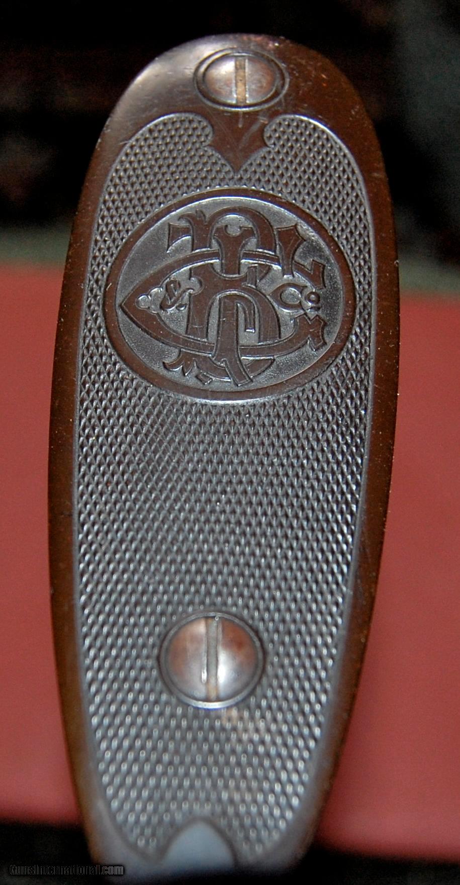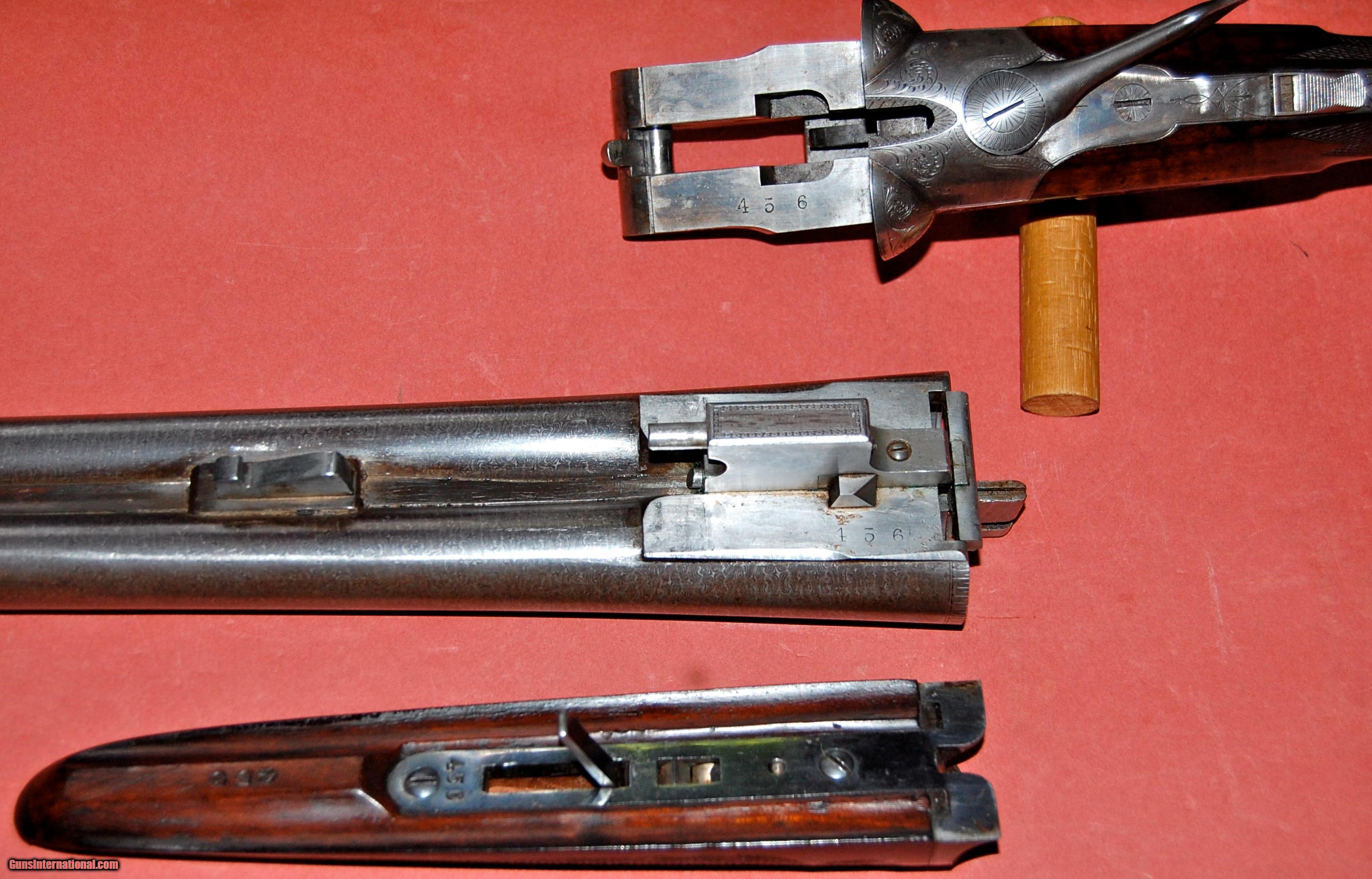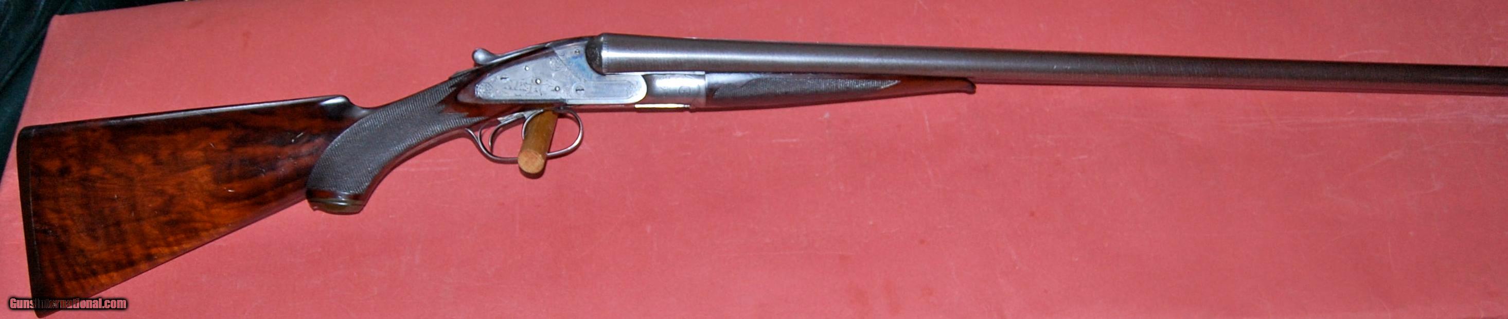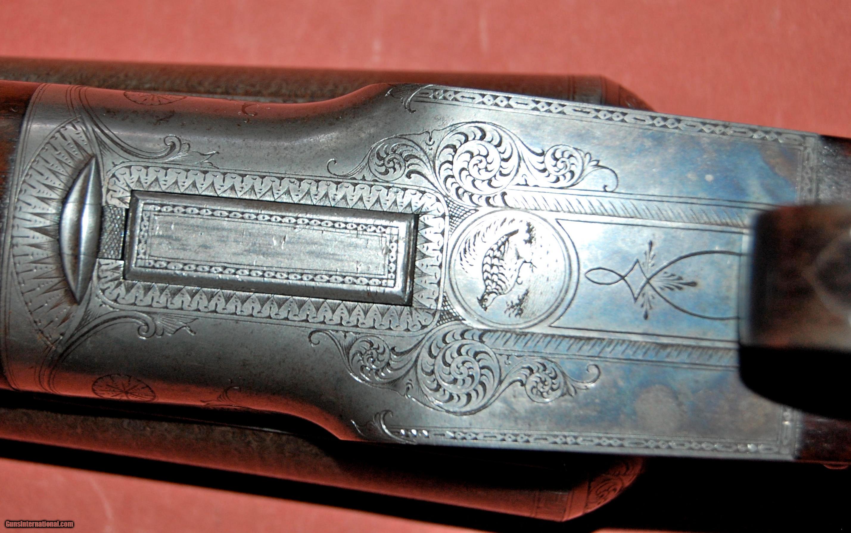 Description: A beautiful all original Baker Paragon grade built in 1896.This gun is in truly outstanding condition,retaining at least 50% of the original case colors,98% of the original damascus finish,and 95% of the original wood finish.The barrels are fine damacus and are 28" long and choked full (,030") and full (.030").The bores are perfect with no rust,dents,or pitting.The bore diemeters are .720" and the chambers are original 23/4".The wall thickness averages over .038" with the thinnest point I could find being .033".I have shot sporting clays with this gun using federal trap loads.The barrels lock up tightly with no play at all.The sidelocks are beautifully engraved featuring pointers on one side and setters on the other.There is a single quail on the bottom of the receiver and a single duck on the trigger guard.The wood is sound and free of any cracks or damage.There were only 1300 Paragons built and each one was special ordered so no two are exactly alike.This one is really in collector condition.Take a look at the photos and call if you have any questions.Classified as an antiquer so it can be shipped direct.I just need proof that you are over 21. SOLD Antique: Yes Manufacturer: Baker Gun Co. Model: Paragon Serial Number: 456 Chambers: 23/4 Ejectors: extractors Metal Condition: excellent Wood Condition: excellent Bore Condition: mint Barrel Type: damascus steel Action: double barrel Triggers: Double Gauge Info: 12ga Stock Dimensions: 141/8"x2"x3 Weight: 7-8 Manufacture Date: 1896 Choke Left: full (.030") Choke Right: full (.030") Engraving: dogs and birds |