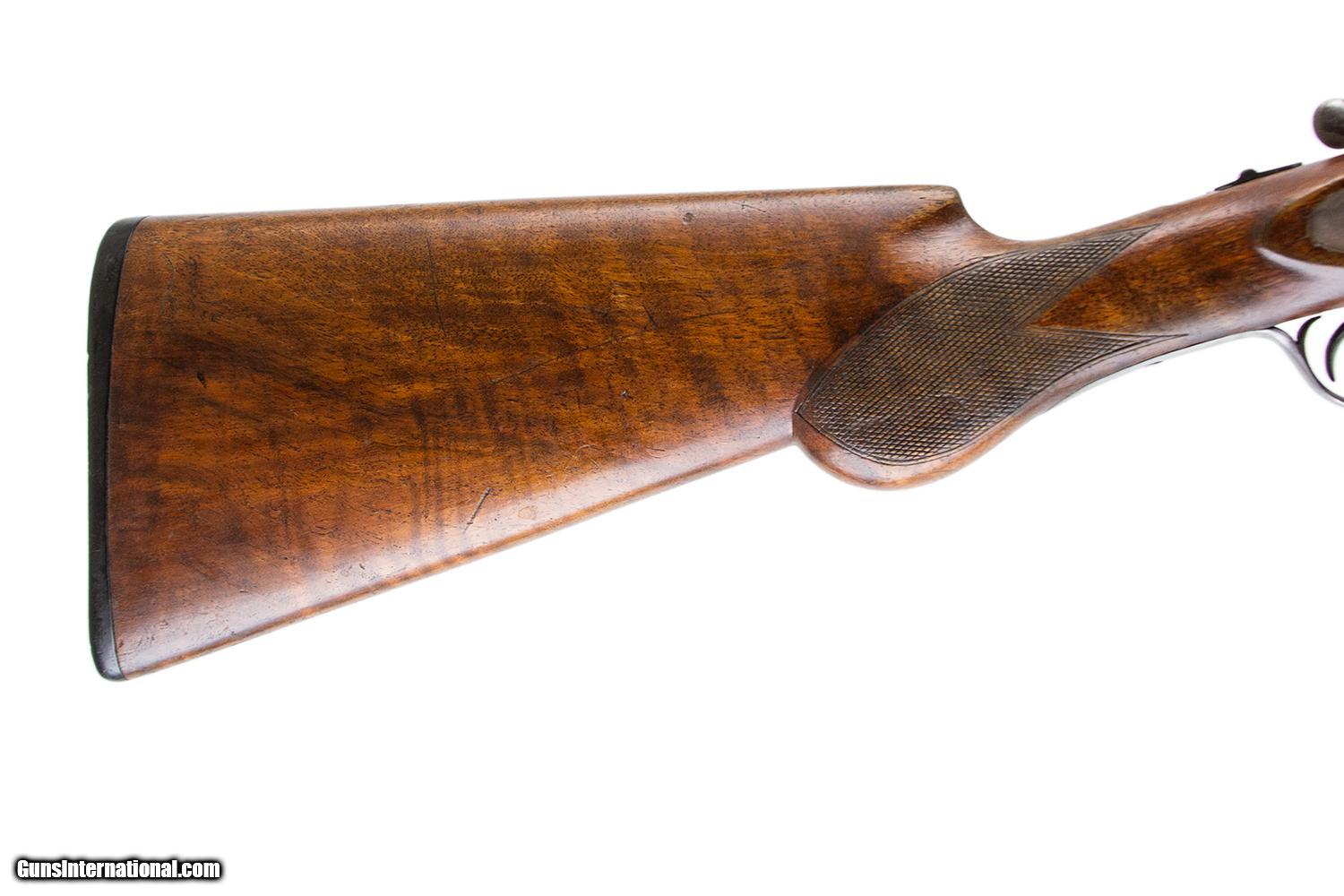 Description: 30" DAMASCUS BARRELS WITH GREAT BORES FULL AND FULL 2 3/4 DOUBLE TRIGGER EXTRACTORS SPLINTER FOREARM PISTOL GRIP EXCELLENT ORIGINAL CONDITION WITH LIGHT WEAR 7 LBS 8 OZ X 3 X 2 X 14 1/4 SOLD |