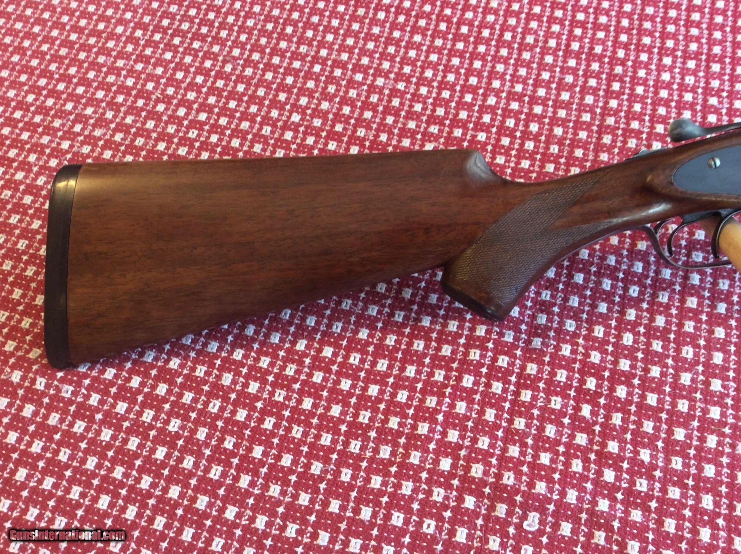 Description: For your viewing is a excellent condition Baker Black Beauty model in scarce 16 Ga. Shotgun has 28” barrels choked F/F. LOP 14” to added pad. DAC 1 1/2”. DAH 3”. Good bores no pitting. Black Beauty’s came with the black-blue sideplates. Other model Bakers were case colored. Shotgun looks to be in original condition except for the rubber butt plate added. Shoots well. Call or email for more inf. Thanks for looking SOLD |