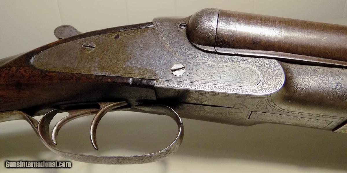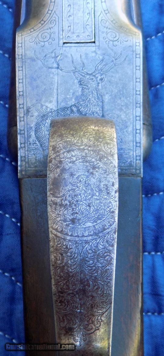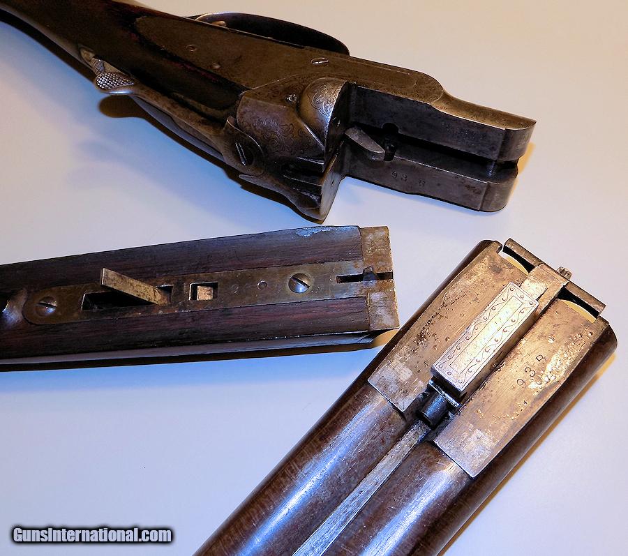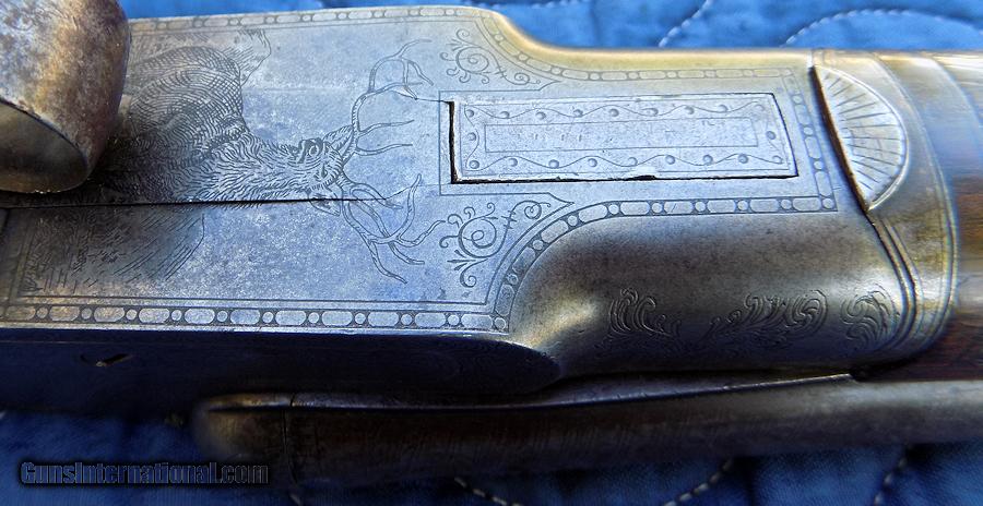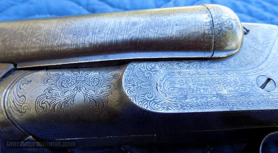 Baker Hammerless 12 guage side by side shotgun 93 B fully engraved Hunt scenes as found