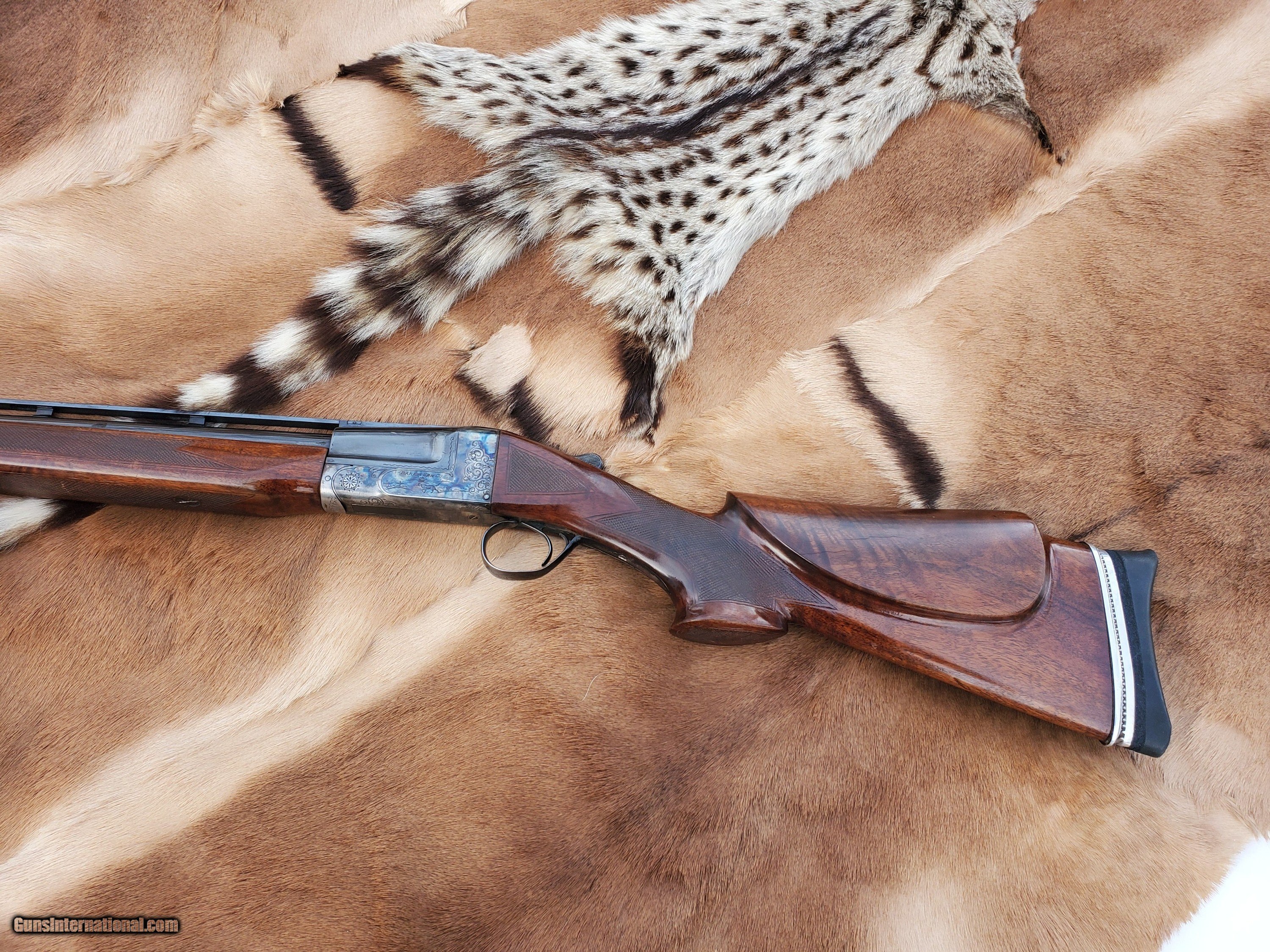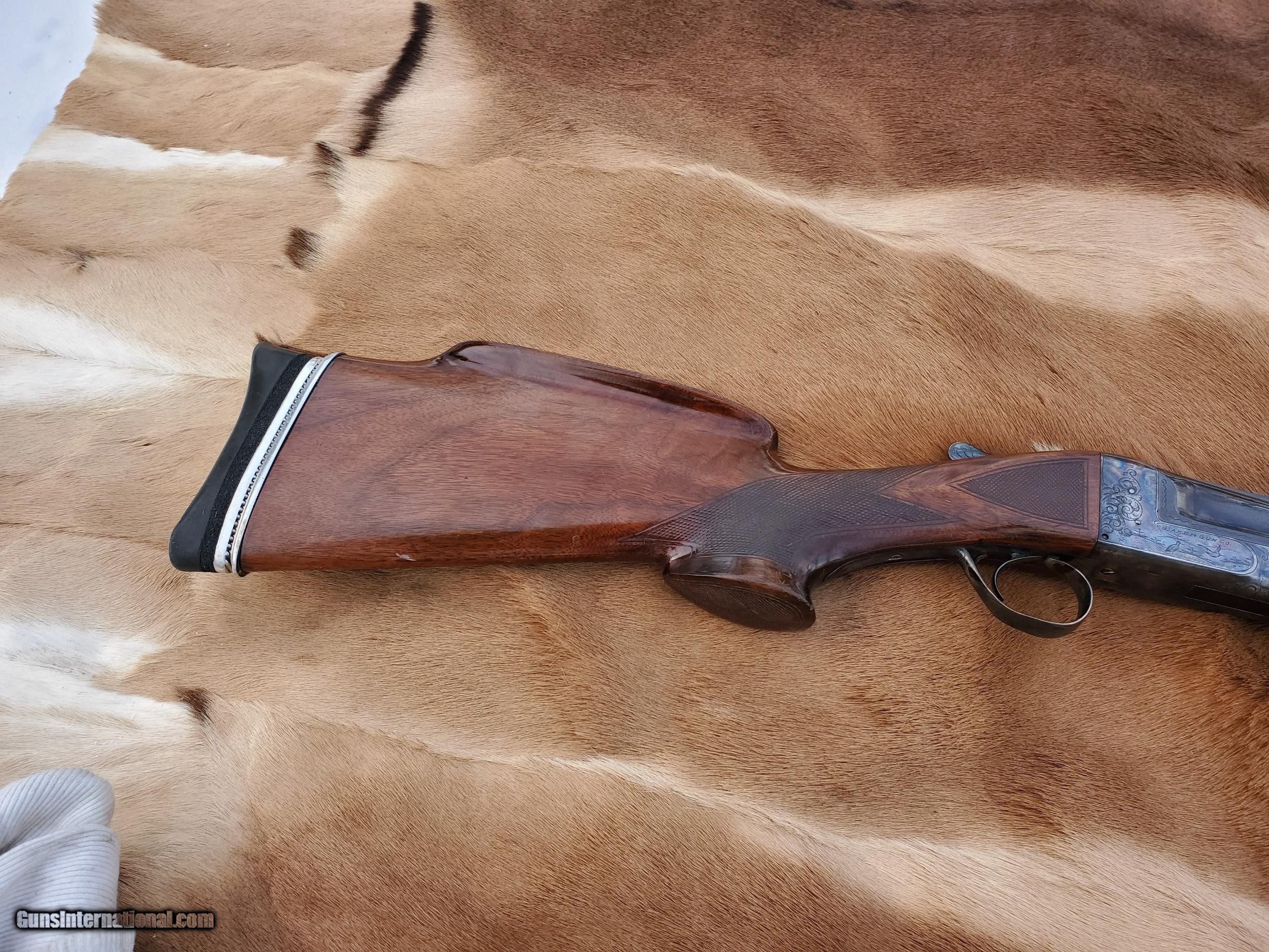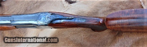 Description: A truly fine example of American gun making in this 1918 Baker. Factory options included Monte Carlo Walnut, Double Ivory Beed and ejectors. Wood is 90% with a light maring on base of Butt Stock, Fine checkered bevertail fore end all with no evident preasure marks or evidence of mishandeling in over 100 years. Water table reflects a C grade Boxlock reciever desighn with exceptional case color of which 90% is still remaining. Engraving of reciever is 90% with almost no wear including fishtail lock release. 32" Barrel has both ivory mid and final bead, Proof indicates L grade Holland fluid steel. There is a 1/4" blu marking on left side of barrel above for end showing a color that resembles a drop of cold blu yet I find it not remarkable. A fine example of a very enjoyable American single barrel gun. SOLD Curio/Relic: Yes Shotgun Gauge: 12 Gauge Manufacturer: Baker Model: Sterling Serial Number: 48828 Bore: 12 Chambers: 1 Ejectors: auto Condition: Excelent Metal Condition: V. Good Wood Condition: V. Good Bore Condition: Excellent Barrels: Rib Barrel Type: Fluid Action: Boxlock Triggers: 3.25 Stock: Walnut Stock Drop: 1 7/8 Stock Comb: 1.14 Stock Heel: 2 Stock Cast: straight Fore End: Beaver Butt Pad: Adj. Bisley LOP: 14.25 Rib: Full 2 bead Finish: oil Weight: 7 lb. 6 oz. Sights: ivory 2 bead Manufacture Date: 1918 Chokes: full Engraving: reciever full Extras: ejectors/monte carlo Case: no Item Location: CT. Proof:Nitro: yes Minimum Wall Thickness Left: .1123 |