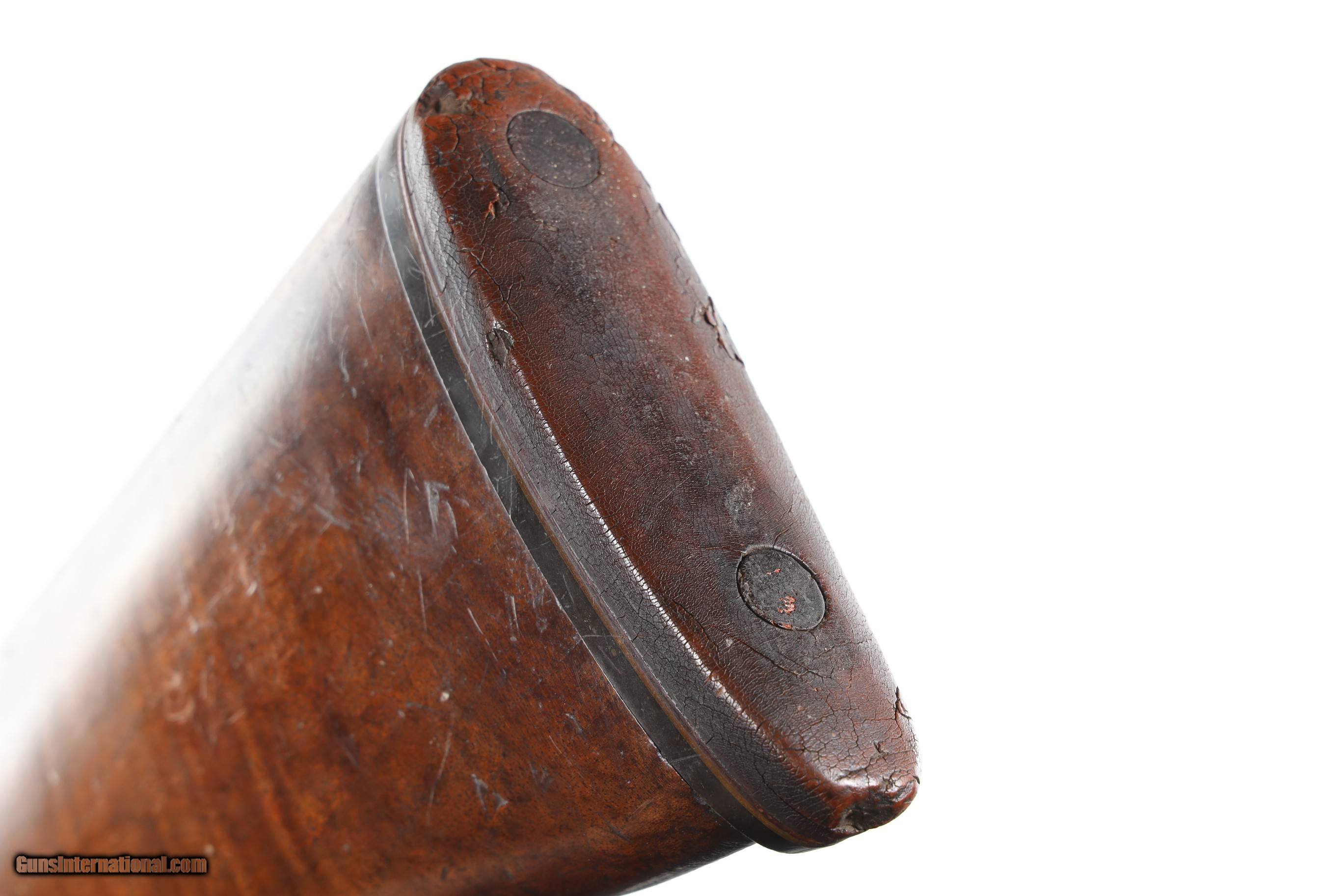 Description: Good with most finish remaining on barrels, markings and legends remain crisp on receiver, stock has period of use impression and bruises, action is hesitant to operate due to dry grease internally as safety fails to release. Choked imp cyl/mod, 2 3/4" chambers, double trigger with lifter, 14 1/4" LOP, drop is 1 1/2" and 2". Mfg in 1915 • Free Shipping, No Credit Card Fees. • Lay-a-way available for this firearm. • 1/3 Down, a 1/3 in 30 Days 1/3 in 60 Days. SOLD Curio/Relic: Yes Shotgun Gauge: 12 Gauge Manufacturer: F T Baker Model: Boxlock Serial Number: 8012 Barrel Length: 28 |