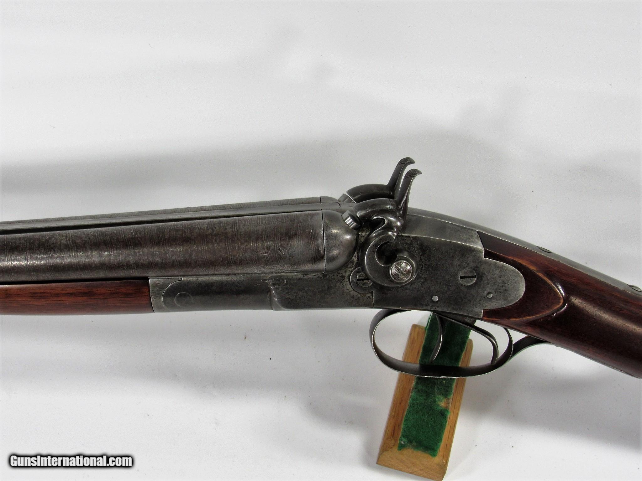 Description: LC SMITH MAKER BAKER GUN SYRACUSE 12GA 30” IC/MOD, GOOD DAMASCUS PATTERN ON THE BARRELS, GRAY RECEIVER. NICELY REFINISHED WOOD. PITTED BORES. LOCKS UP TIGHT, OPENS BY PUSHING THE FRONT TRIGGER FORWARD. MADE IN THE 1880’S, ANTIQUE SOLD Antique: Yes |