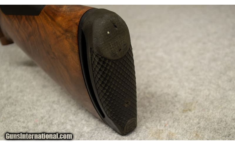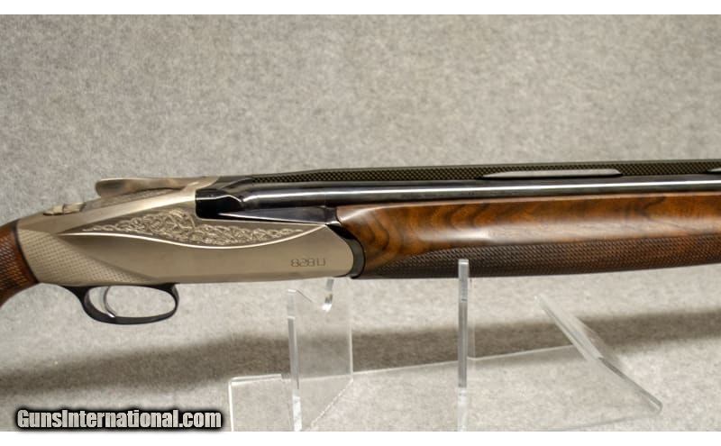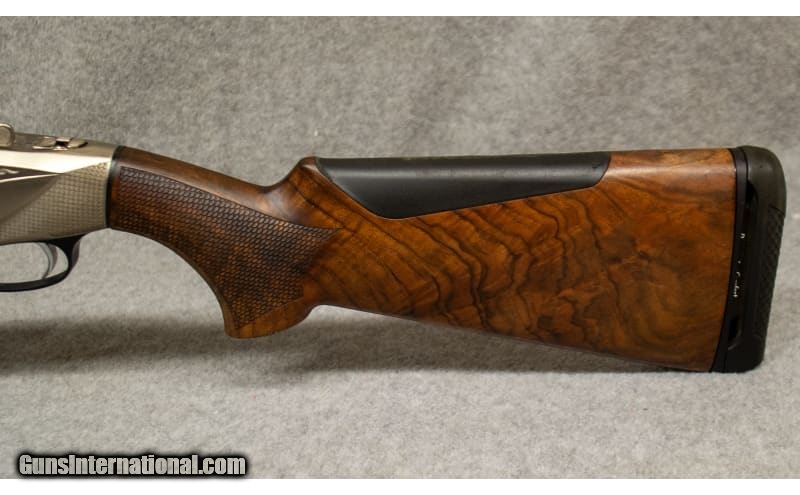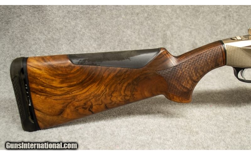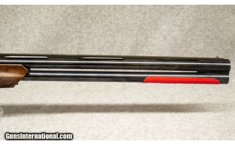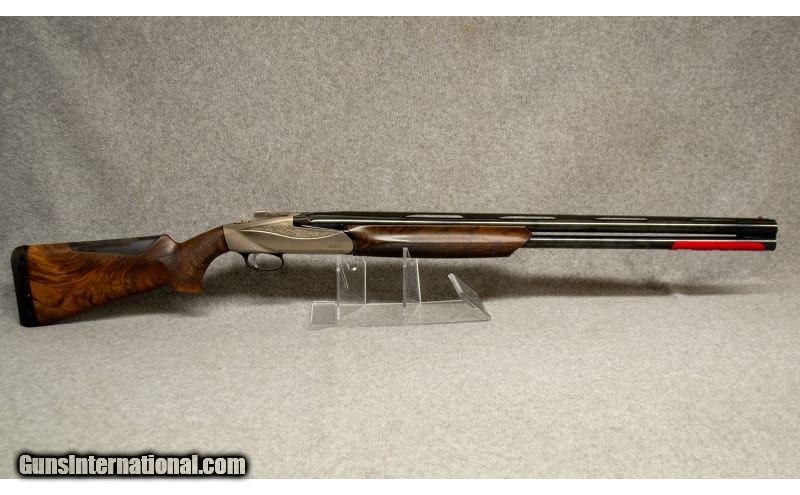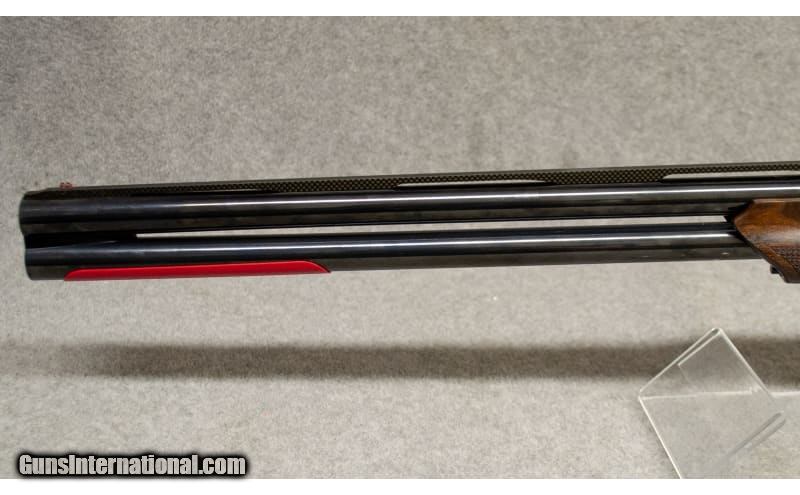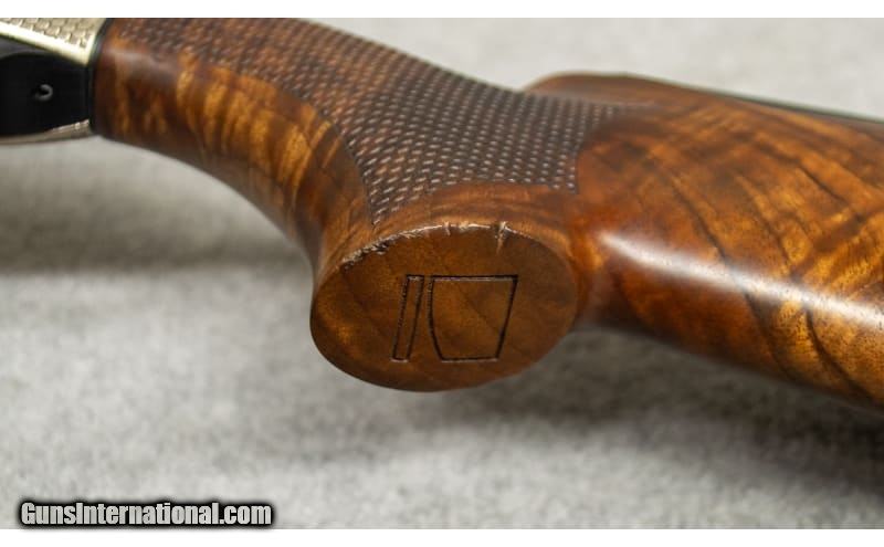 Description: 12 ga., 3 in. chambers, 28 in. separated cryogenically treated interchangeable barrels with carbon fiber vent rib, fiber optic front sight, polished aluminum receiver with combination of scroll and scalloped ornamentation, ejectors, compact removable trigger assembly, AA grade satin finished walnut stock and forearm with ergonomic recoil pad, gel comb insert, and fish scale pattern carving, top tang safety, patented steel locking system. Gel comb shows some notable wear, and a fair piece of the rubber recoil pad is missing from the bottom edge. There are some small dings by the bottom of the grip and near the throw lever. Overall condition is Good, and ships with its original case as well as a full set of chokes. 12 Gauge SOLD Chambers: 3 Stock Dimensions: LOP: 14 1/2" Drop at Comb: 1 3/8" Drop at Heel: 1 7/8 Item Location: Greenville, SC |