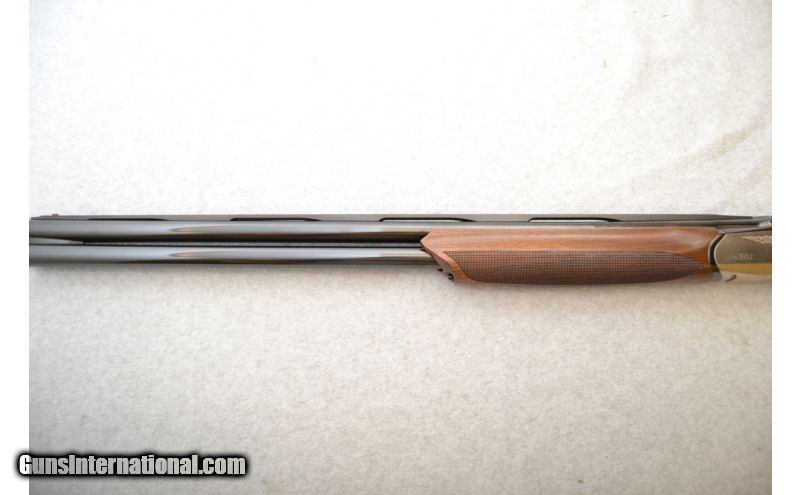 Description: Overall condition of this shotgun is very good to excellent. The metal and finish look basically new. The stock has an extremely tiny handling mark or two but are barely visible. The bore looks like it just left the factory. SOLD Caliber Info: 12 Gauge Chambers: Over/under configuration chambered for 3" shells. Metal Condition: Excellent. Wood Condition: Excellent. Bore Condition: Excellent. Barrels: 28" Gloss blued with carbon fiber ventilated rib. Triggers: Polished "silver" with smooth surface. Stock: AA-Grade checkered walnut with satin finish. Stock Dimensions: 14 ¾" LOP Fore End: AA-Grade split bottom panel checkered walnut with satin finish. Butt Pad: Black Progressive Comfort System pad. Weight: 6.6lbs Sights: Red front bead. Chokes: Barrel is threaded for Crio chokes. Comes with C, IC, M, IM, & F choke tubes. Extras: Comes with the factory case, chokes, owners manual, the full shim kit, and anything else in the pictures. Item Location: Green Bay, WI |