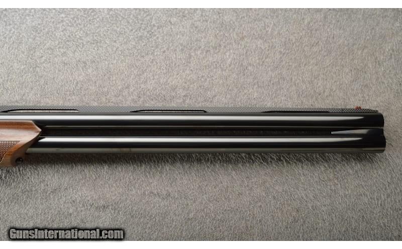 Description: Benelli 828U Over/Under shotgun chambered for 3", 12 gauge shells. This example has 28" barrels with extractors and a carbon fiber ventilated stepped rib. The front sight is a fiber-optic. The sides of the nickel plated receiver have braided oak-leaf and fish-scale engraving. The stocks are two-piece fish-scale checkered AA-Grade walnut with finger-grooved forend, flat-bottom pistol grip, straight comb with black rubber insert and black rubber Progressive Comfort recoil pad system. Comes new in the factory hard case with owners manual, choke wrench, 8 stock shims for different stock angles, and 5 Crio chokes "CL, IC, FULL, MOD, IM". 12 Gauge Chambers: 3" chamber. Metal Condition: New. Wood Condition: New. Bore Condition: New. Barrels: 28" barrel. Triggers: Single trigger. Stock Dimensions: LOP 14.5". Fore End: Finger groove with fish-scale checkering. Butt Pad: Rubber. Sights: Hi Viz front sight. Chokes: Removable. Item Location: Owatonna, MN Price: $2,699.99 Contact Seller |