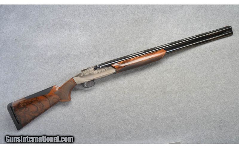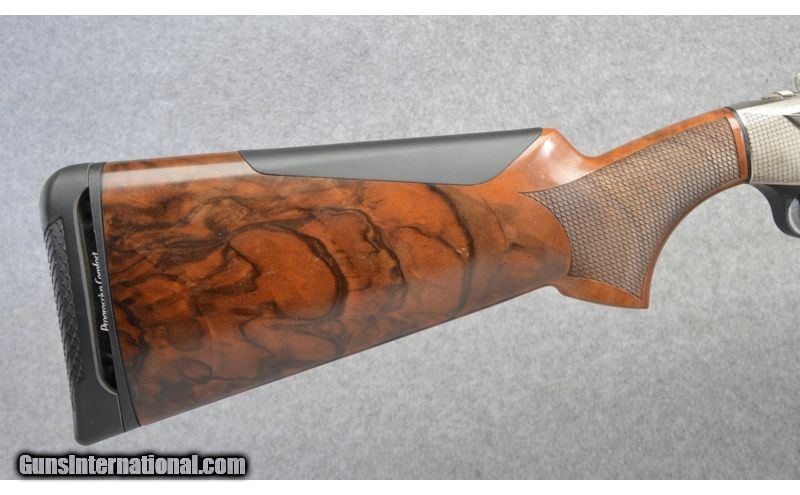 Description: Pre-owned Benelli Model 828U over and under in 12 Gauge. Engraved and nickle plated, lightweight alloy frame. High grade walnut stock with Progressive Control recoil reduction system is adjustable for length of pull and comb height. Includes makers case, 5 choke tubes, and manual . SOLD Caliber Info: 12 Gauge Chambers: 3 Inch Metal Condition: Excellent Wood Condition: Scattered light nick and marks Bore Condition: Very Bright Barrels: 28 Inch Triggers: SST Stock: Square Knob Pistol Grip , Checkered AA Walnut Stock Dimensions: 14 1/2" LOP Fore End: AA Grade Walnut Butt Pad: Benelli Progressive Comfort recoil reduction system. Weight: 6 Lbs 9 Ozs Sights: Carbon Vent Rib, Red Bar Front Sight Chokes: Mod/Imp Cyl. Screw-in chokes Item Location: Buda, TX |