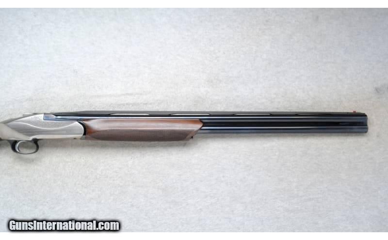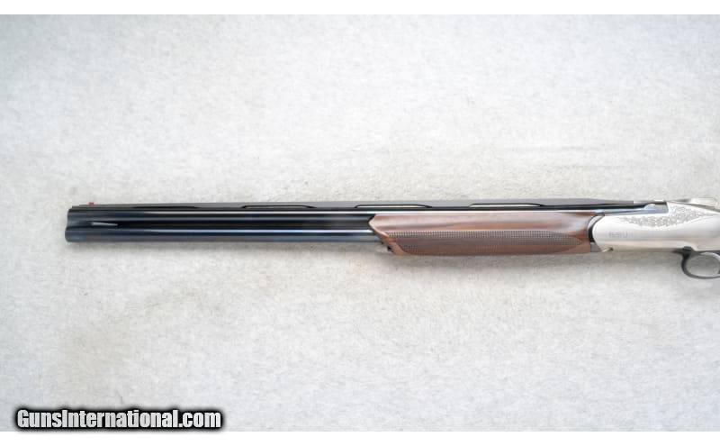 Description: This Benelli Model 828U is an over and under shotgun in 20 Ga. It has 26.5 inch separated barrels with a top barrel carbon fiber ventilated rib. A red high visibility front sight. It has a Single Select Trigger. The butt stock is a checkered grip walnut pistol grip with a black rubber comb. The forearm is a checkered grip walnut with finger grooves. The nickle finish receiver is nicely engraved. 20 Gauge SOLD Chambers: 3 inch. Metal Condition: Excellent. Wood Condition: Excellent. Bore Condition: Bright and shiny. Barrels: 26.5 inch separated barrels with a carbon fiber top barrel ventilated rib. Triggers: SST Stock Dimensions: LOP 14 5/8 inches. DAC 1 1/4 inch. DAH 1 3/4 inch. Fore End: Checkered grip walnut with finger grooves. Butt Pad: Progressive comfort black rubber recoil pad. Weight: 5 lb. 14 oz. Sights: Red high visibility front. Chokes: Comes with M and IC choke tubes in the gun. Item Location: Richfield, WI |