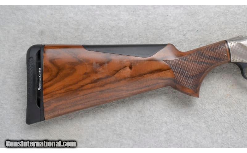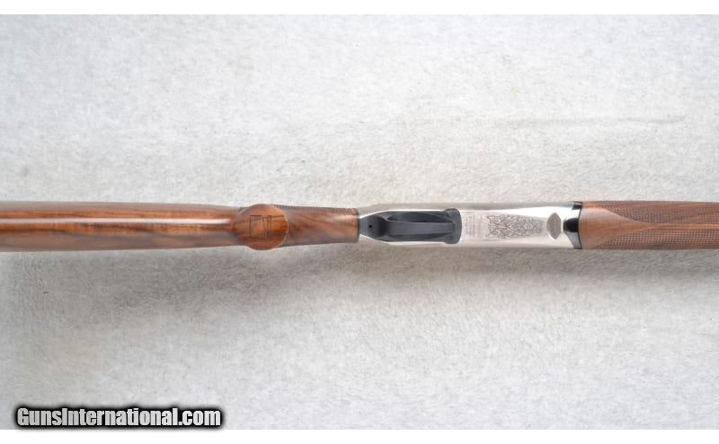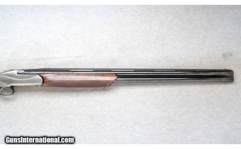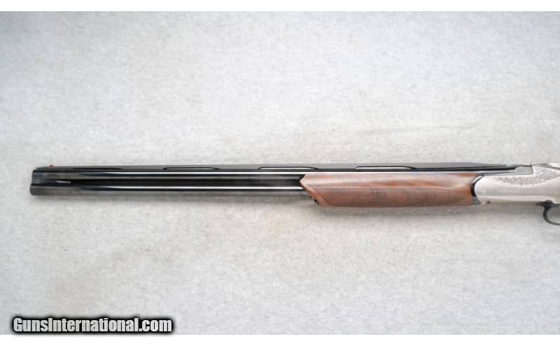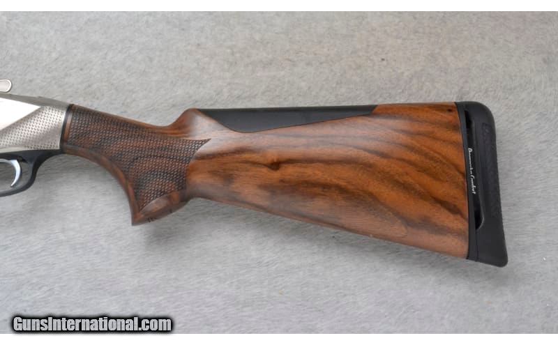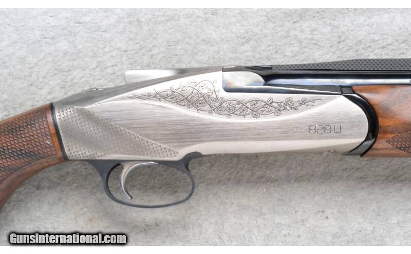 Description: This Benelli Model 828U is an over and under shotgun in 20 Ga. It has 28.5 inch separated barrels with a carbon fiber top barrel ventilated rib. A red high visibility front sight. The butt stock is a checkered grip walnut pistol grip with a black rubber comb. The forearm is a checkered grip walnut with finger grooves. The nickel coated receiver is nicely engraved. 20 Gauge SOLD Chambers: 3 inch. Metal Condition: Excellent. Wood Condition: Very good. Right side butt stock has some surface blemishes. Bore Condition: Bright and shiny. Barrels: 28.5 inch separated barrels with a carbon fiber top barrel ventilated rib. Triggers: SST Stock Dimensions: LOP 14 5/8 inches. DAC 1 1/4 inch. DAH 1 3/4 inch. Fore End: Checkered grip walnut with finger grooves. Butt Pad: Progressive Comfort black rubber recoil pad. Weight: 6 lb. 0 oz. Sights: Red high visibility front. Chokes: Comes with 5 choke tubes. Item Location: Richfield, WI |