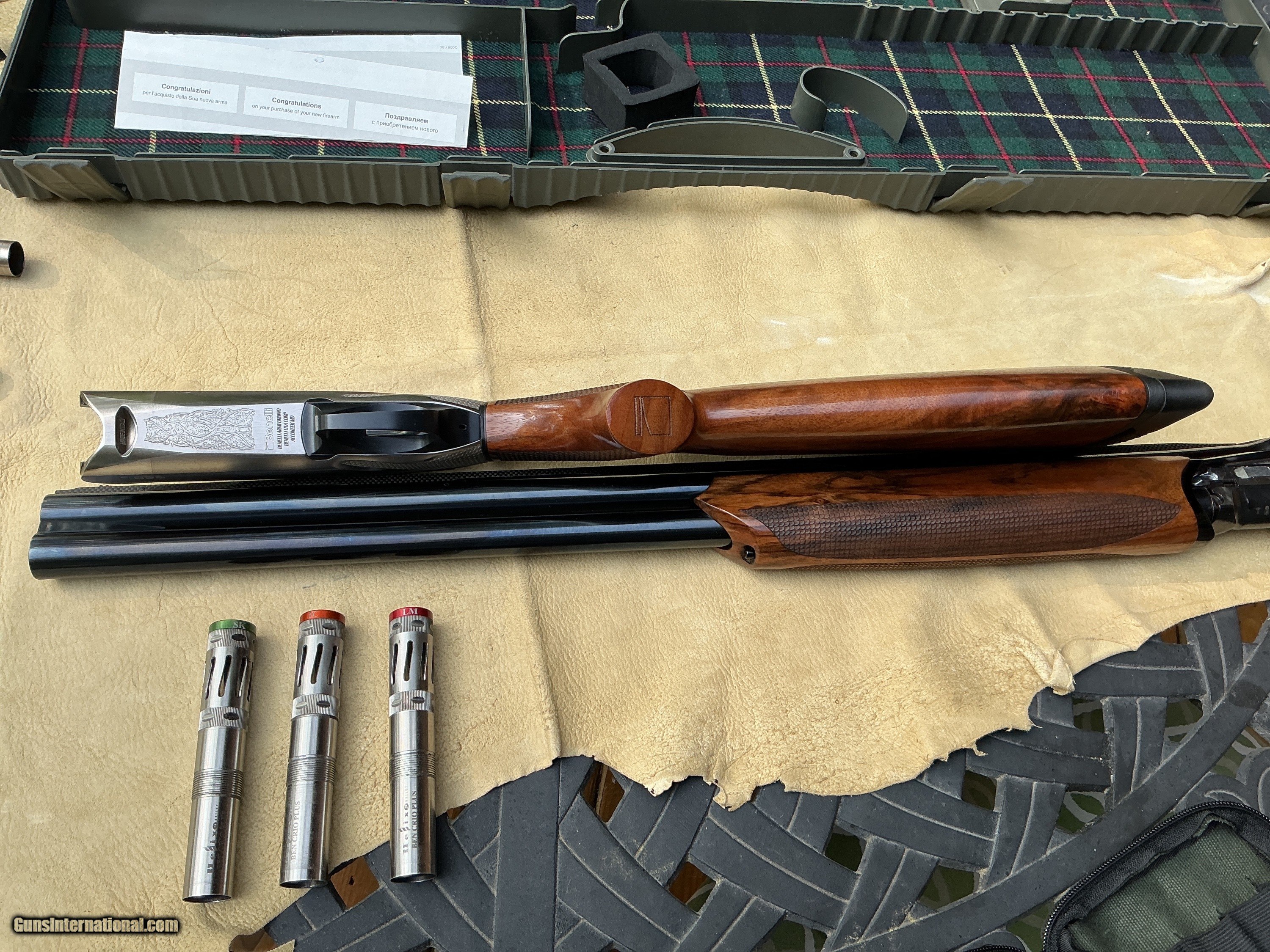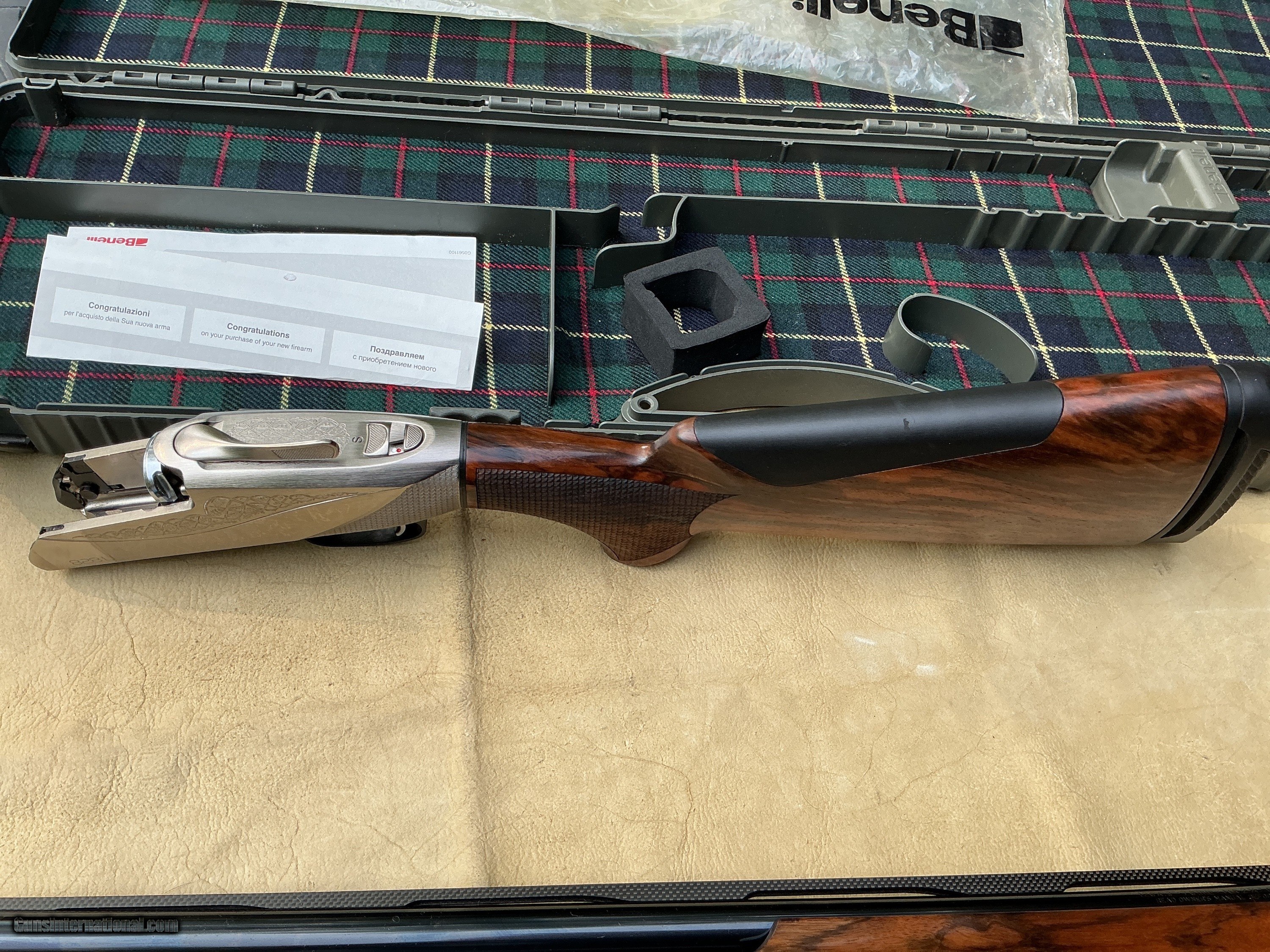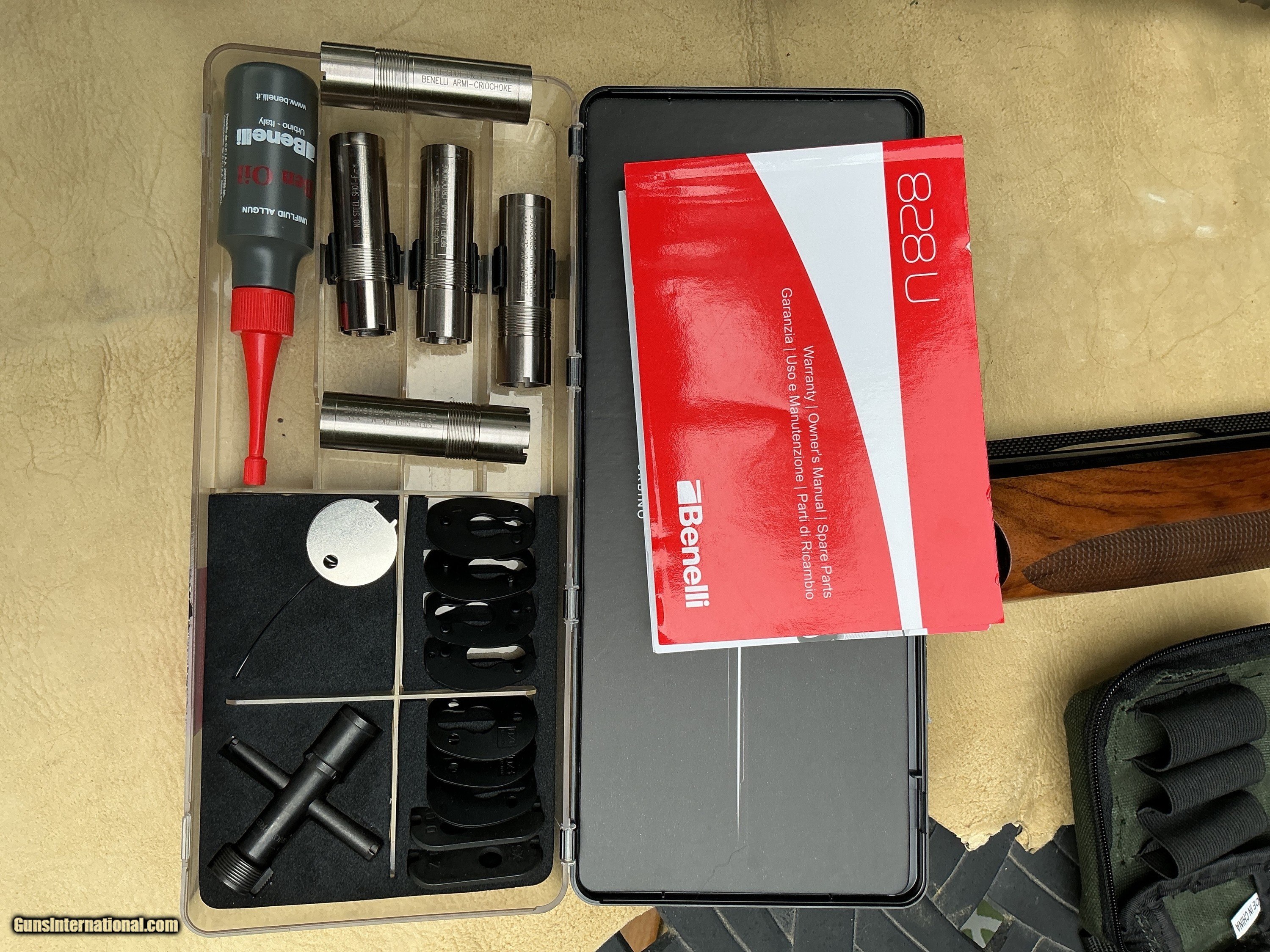 Description: Benelli 828U 12 ga with 26" barrels. This gun comes up for sale because a guy bought this for his wife, and she did not like it and took over his Ethos. So this gun is being sold so that he can buy her a new ethos for her collection. This gun is in excellent condition having been fired less than 100 rounds. It was put in the safe almost 2 years ago and has never been used again. There is also a set of Briley Helix Tubes that Can be purchased with the gun for an additional $250. as you can see from the photographs, there is no mark on the bolt face, and nothing on the barrels, locking mechanism that shows anywhere at all. I feel I could have listed this gun as new in the box and no one would have known the difference, It is in that nice of shape, his loss, is your gain. This gun will be shipped to your dealer at a cost of $60 insured. NOW LISTED ON SOLD Shotgun Gauge: 12 Gauge Manufacturer: Benelli Model: 828U Serial Number: BS020082S16 Barrel Length: 26” Bore: Bright and shiny Chambers: 3 inch Ejectors: Yes Condition: Excellent Metal Condition: 100% Wood Condition: 100% Bore Condition: Bright and shiny Barrels: Carbon fiber rib Action: Break open Triggers: Single Stock: AA Walnut Stock Cast: All shims included Rib: Carbon fiber Weight: Under 7 pounds Chokes: All five Benelli chokes Engraving: Yes Extras: Briley Helix can be purchased at a cost of $250 Case: Yes Item Location: Michigan |