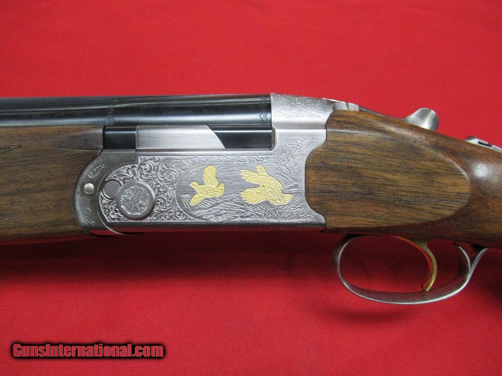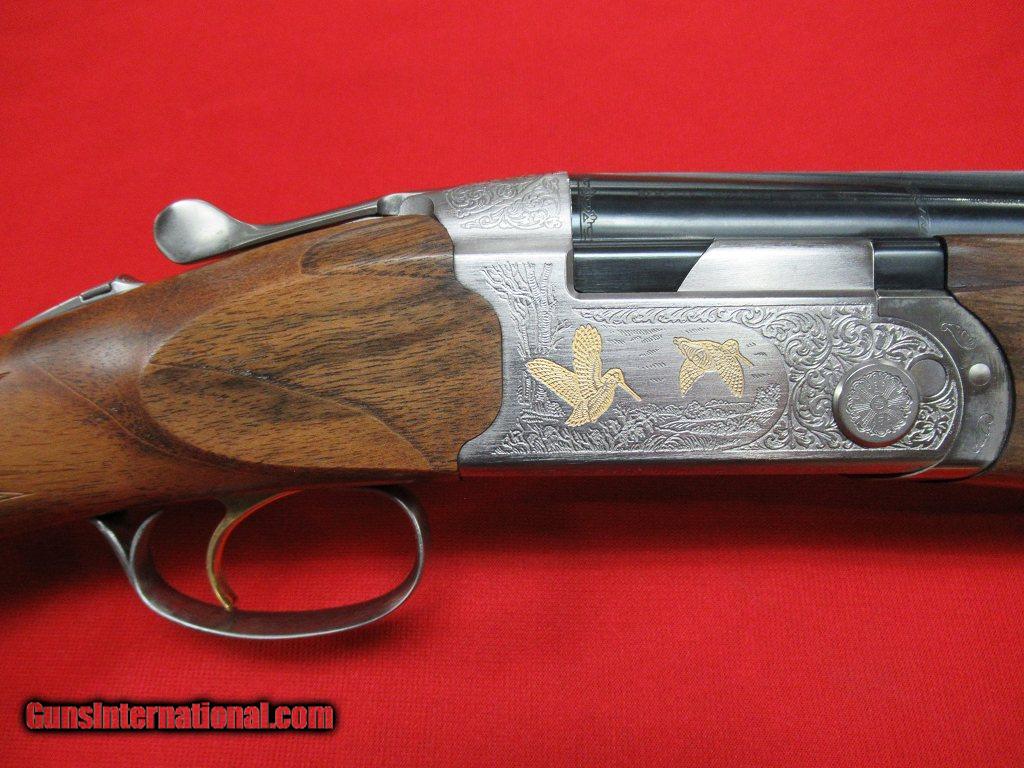Description: Beretta 687 Ultralight Deluxe 12ga/28" Multichoke (LNIC)-- Beretta 687 Ultralight Deluxe with alloy receiver featuring gold woodcock and grouse with scroll. This gun has a well-figured satin finished stock and schnaubel forend with factory installed choke tubes. It remains in mint condition showing little if any use (it could possibly be unfired). This would make a great upland gun. Factory case and additional choke tubes, sling swivels, and additional recoil pad included. SOLD |