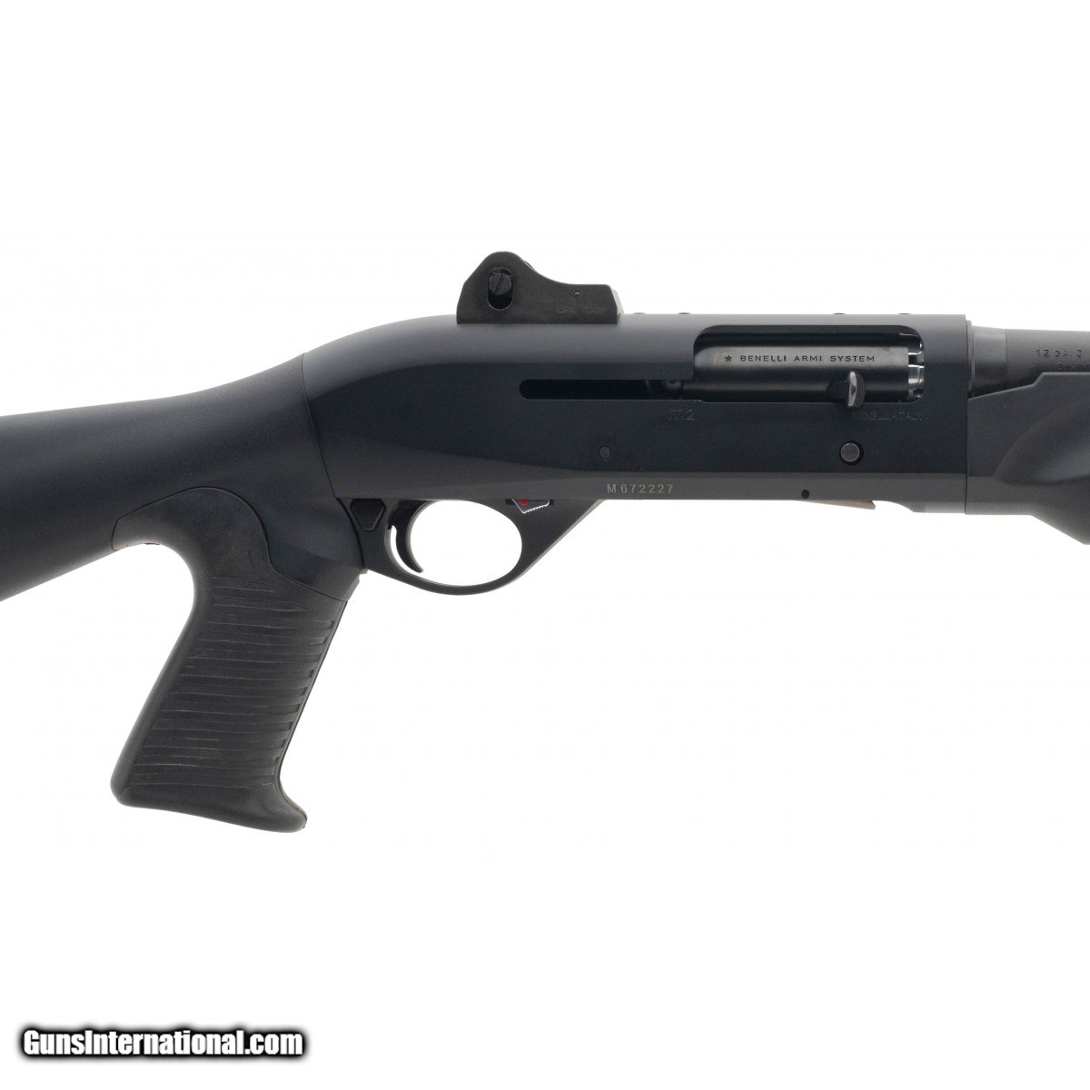 SN:M672227. Semi-auto shotgun with a 18.5"" barrel and ghost ring sights. Overall in very good condition, with an extended magazine tube.
