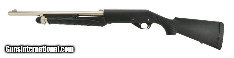 Description: Benelli Nova 12 Ga shotgun. H20 Nova 18” barrel, black stock, matte nickel finish, tactical rifle sight, 3½” cylinder bore. New.