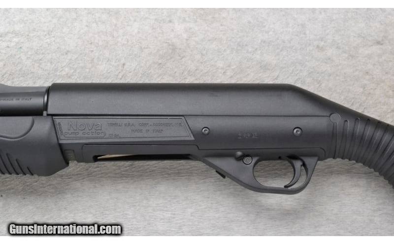 Description: This Benelli Model Nova is a right hand pump action shotgun in 20 Ga. It has a 25.5 inch barrel with a ventilated rib. A red high visibility front sight and a metal bead middle sight. With a 3 inch chamber it comes with a Modified choke tube. The butt stock is a ribbed grip black polymer pistol grip. The forearm is a ribbed grip black polymer with finger grooves. 20 Gauge SOLD Chambers: 3 inch. Metal Condition: Very Good. Has some minor use marks. Bore Condition: Shiny. Barrels: 25.5 inch barrel with a ventilated rib. Stock Dimensions: LOP 14 inches. Fore End: Ribbed grip black polymer with finger grooves. Butt Pad: Black rubber recoil pad. Weight: 6 lb. 8 oz. Sights: Red high visibility front. Metal middle bead. Chokes: Comes with a Modified choke tube in the gun. Item Location: Richfield, WI |