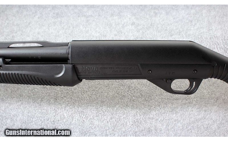 Description: The Benelli™ Nova® is an innovatively designed Pump-Action Shotgun made from hi-tech materials. The Nova is an ultra reliable, nearly indestructible pump shotgun that's ideal for all-round rugged use. Benelli constructs the Nova with corrosion-proof polymer over-molded on a skeleton framework to form single-piece receiver and buttstock for unsurpassed strength and weather resistance. The polymer forearm pushes a rotary-head bolt back with dual-action bars. Aggressive ribbing on the pistol grip and forearm provide a secure hold on the gun under any circumstances. A magazine disconnect button on the bottom of the forearm allows user to quickly unload the chamber without releasing another round from the magazine to quickly load another round via the ejection port in the event that a different shooting situation suddenly presents itself. The matte finished steel barrel features ventilated stepped rib with a mid bead and red-bar front sight. The Nova utilizes a magazine cap that doubles as a tool for pushing out the single pin that holds the trigger assembly in place, making fieldstripping fast and easy. The 20 gauge Nova has a 3" chamber. Manufactured 2018 20 Gauge SOLD Chambers: 3 inch Metal Condition: As new Bore Condition: As new Barrels: 26 inch barrel Stock Dimensions: 14 3/8 inch LOP Butt Pad: Benelli recoil pad Weight: 6 Lbs. 8 Oz. Sights: Vent rib with fiber optic front bead and metal mid bead Chokes: Interchangeable choke tubes Item Location: Lehi, UT |