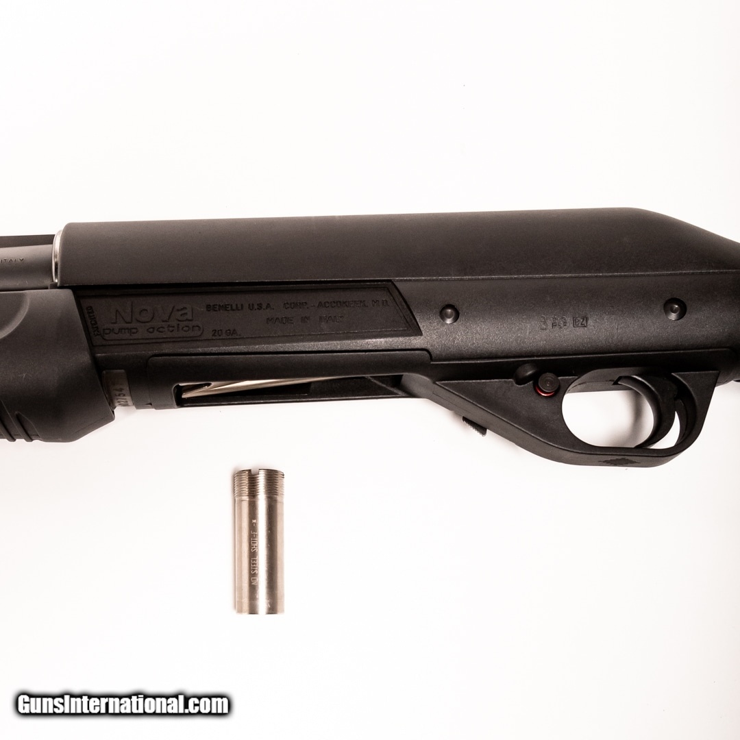 Description: Guns Listing ID: 616622 Rugged, reliable, and designed for hunters who prefer a pump-action, the Benelli Nova is a great shotgun that won‚‚t let you down. It is loaded with features that ensure peak performance and is great for first-time hunters and seasoned outdoorsmen alike. Innovatively designed with lightweight modern materials, the Nova is easy to carry all day but doesn‚‚t have the heavy recoil traditionally found with lightweight shotguns. This 20-gauge Nova features a 3\" chamber and includes a wrench and two chokes (mod and full SOLD Manufacturer: BENELLI Model: NOVA Condition: Used - Certified Barrels: 25.5 BARREL Gauge Info: 20 GA Finish: BLACK |