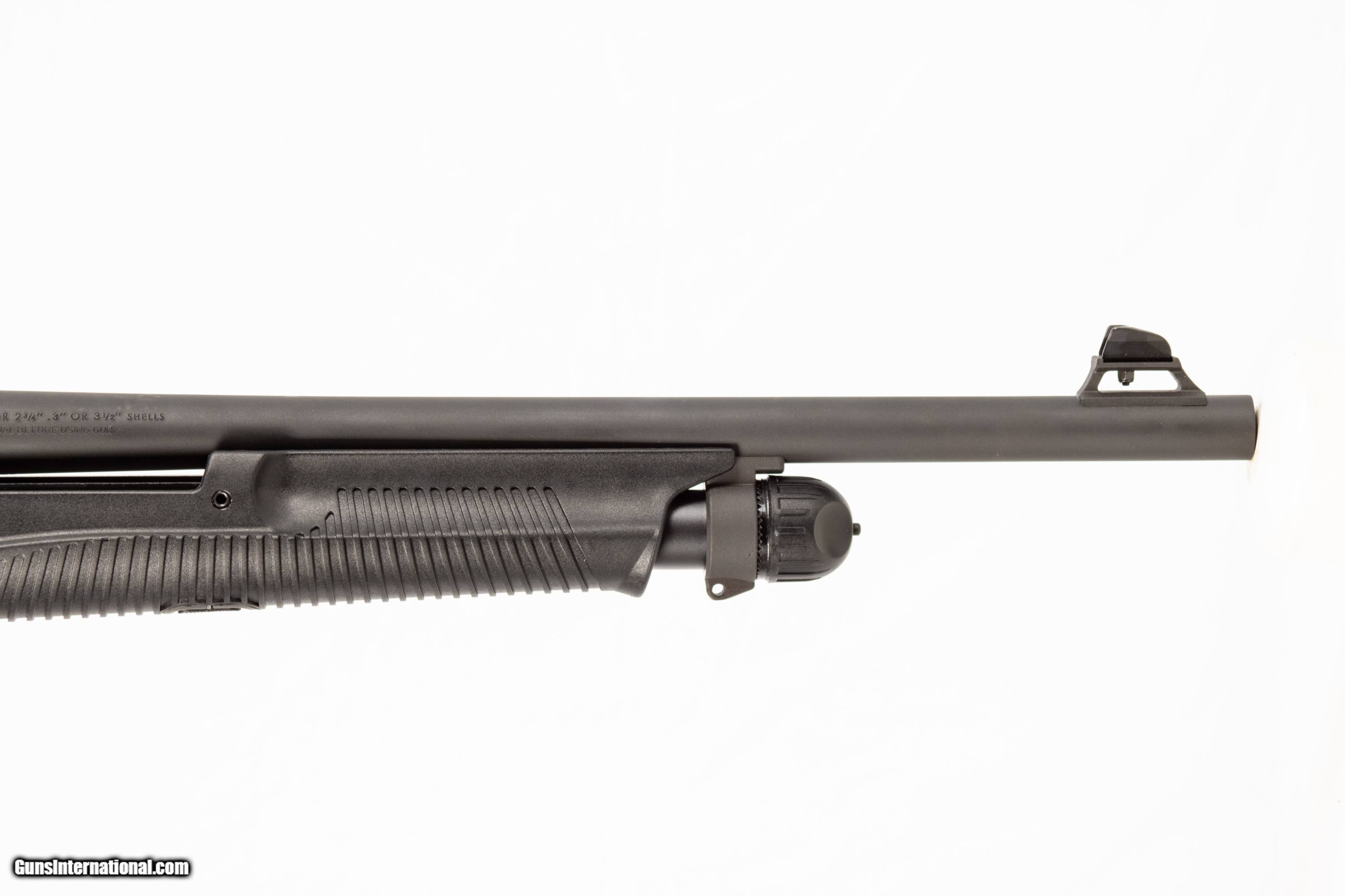Description: Benelli Super Nova with an 18 1/2 inch barrel bright & shiny bore3 1/2 inch chamber cylinder choke peep sight and a 14 1/4 inch LOP. This firearm is in excellent condition and is covered by Dury's Lifetime Warranty.