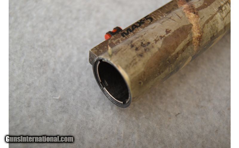 Description: Good shape overall; any issues with it are cosmetic. Minor wear to the camo in spots like near the muzzle, hard edges, and where the pump rubs against the side of the receiver. Bore is excellent with bright shine and no deformities. 12 Gauge SOLD Chambers: Pump-action fed from a tubular magazine chambering up to 3½" shells. Metal Condition: Good. Wood Condition: Furniture is in good condition. Bore Condition: Excellent. Barrels: 26" With ventilated rib and Max-5 camo. Triggers: Wide matte black polymer with smooth surface. Stock Dimensions: 14½" LOP. Fore End: Textured synthetic with Max-5 camo. Butt Pad: Ventilated black rubber pad. Weight: 8 lbs. Sights: Red front light pipe and stainless steel middle post. Chokes: A single improved cylinder choke tube is included. Item Location: Green Bay |